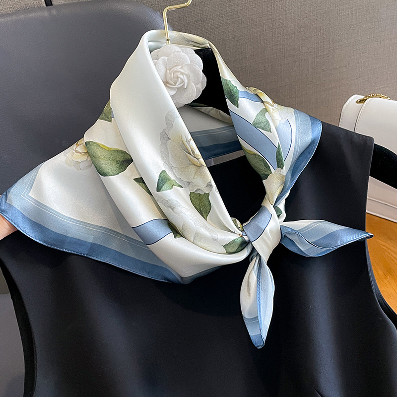 Blue Flowers Women’s Floral Print Mulberry Silk Shawl, 53cm (Style 2)