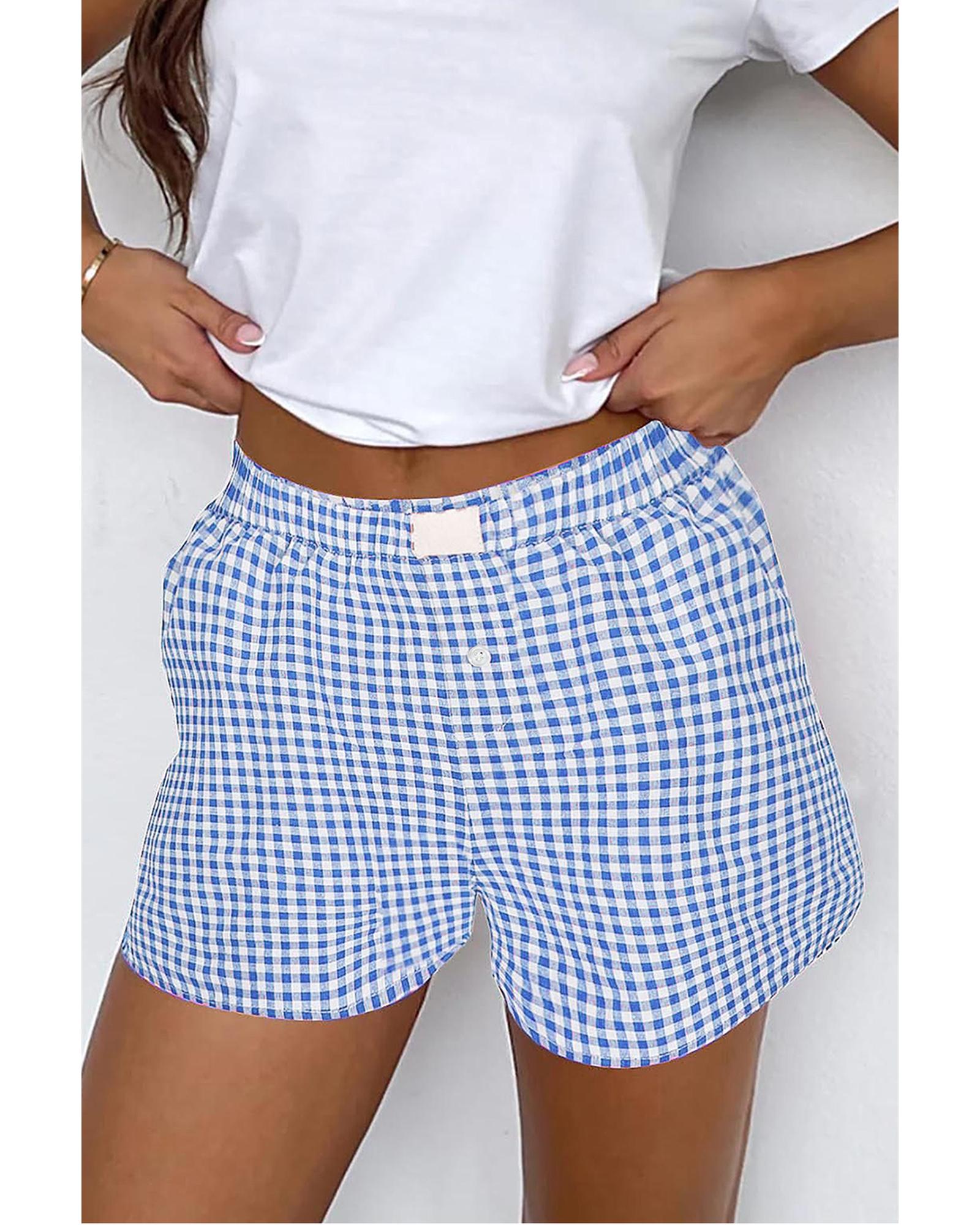 blue Red Plaid Gingham Printed High Waist Shorts – L