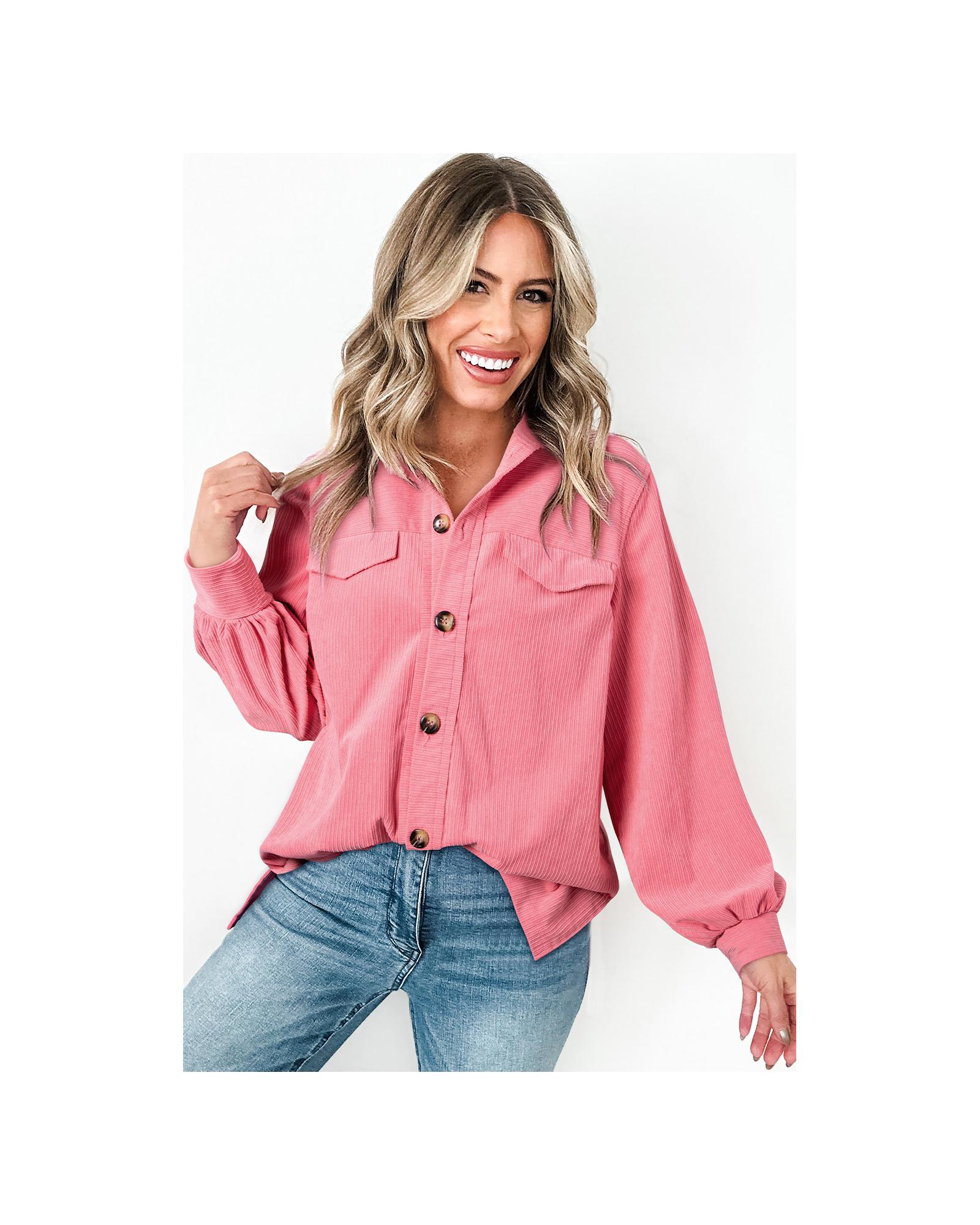 Bonbon Corduroy Flap Detail Button Up Split Shacket – L