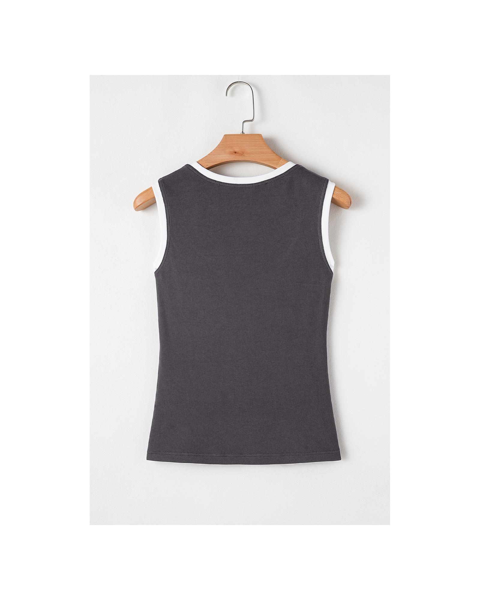 Carbon Grey Ribbed Knit Colorblock Edge U Neck Slim Fit Tank Top – L