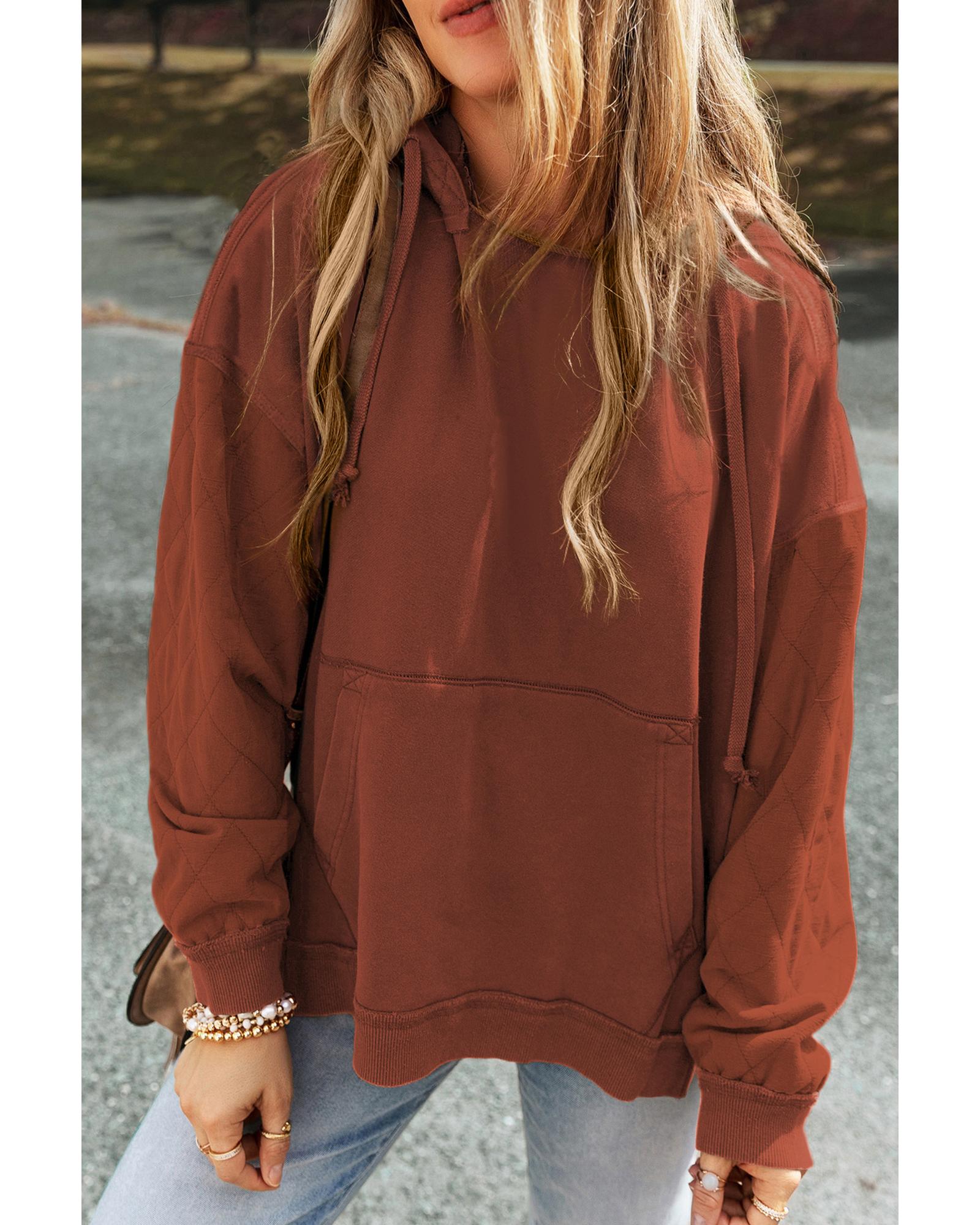 Chestnut Quilted Patchwork Exposed Seam Hoodie – L