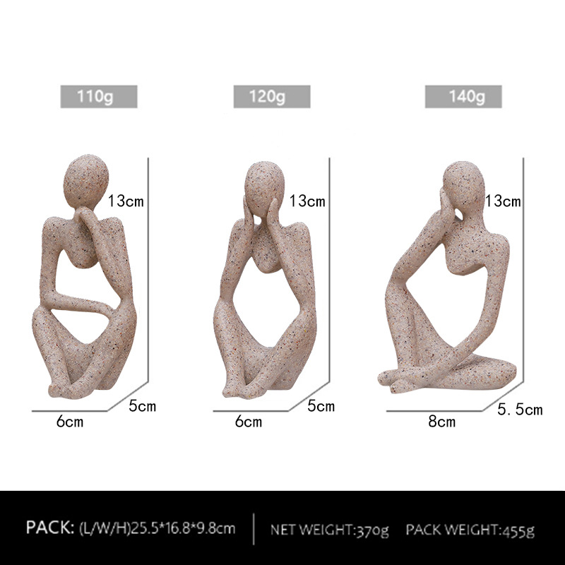 Abstract Thinker Sculpture Set – Coffee Resin Figurines, Modern Art Home Decor, Set of 3