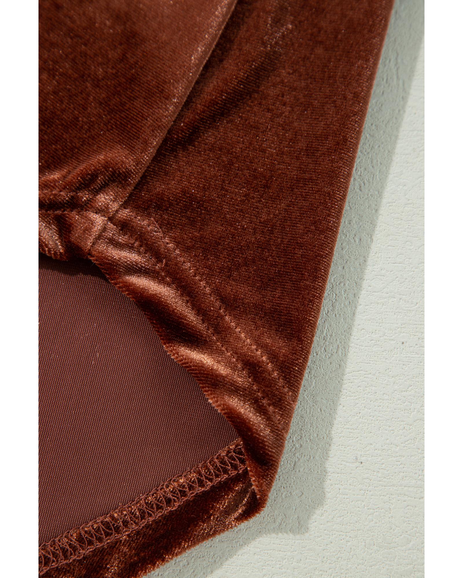 Coffee Plus Size V Neck Collared Pleated Back Rounded Hem Velvet Dress – 3X