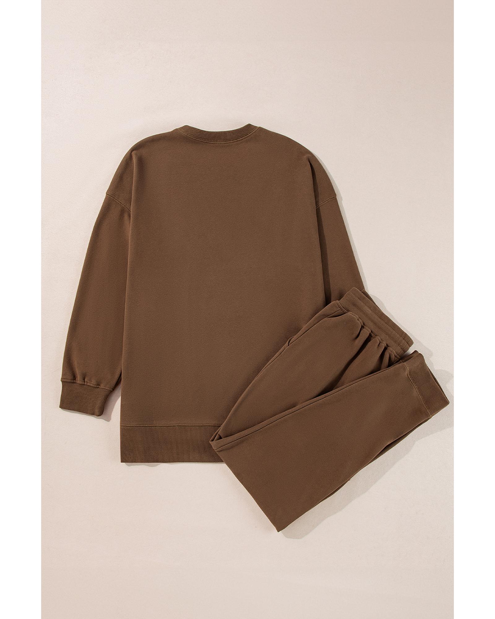 Coffee Solid Loose Fit Two Piece Fleece Lounge Set – XL