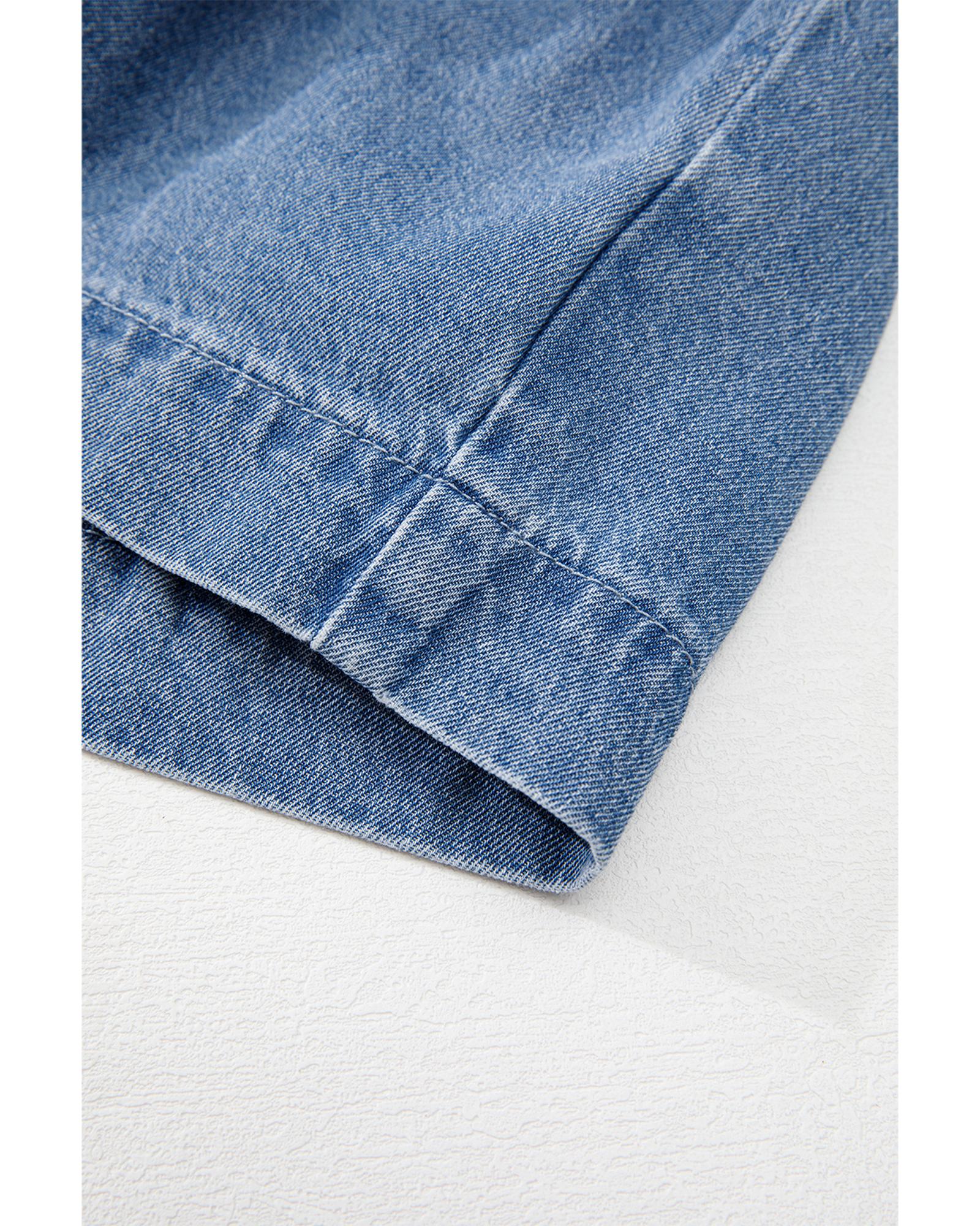 Dusk Blue Wide Strap Button Front Pocketed Denim Mini Dress – XL