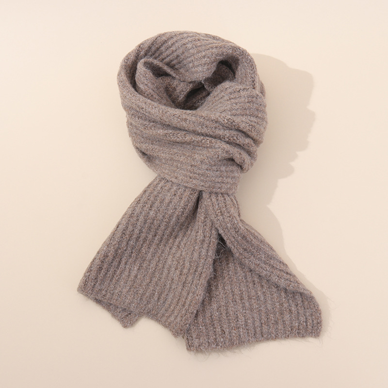 Hemp Grey Soft Ribbed Knit Winter Scarf – Cozy Warm Wool Blend Neck Wrap (160x25cm)
