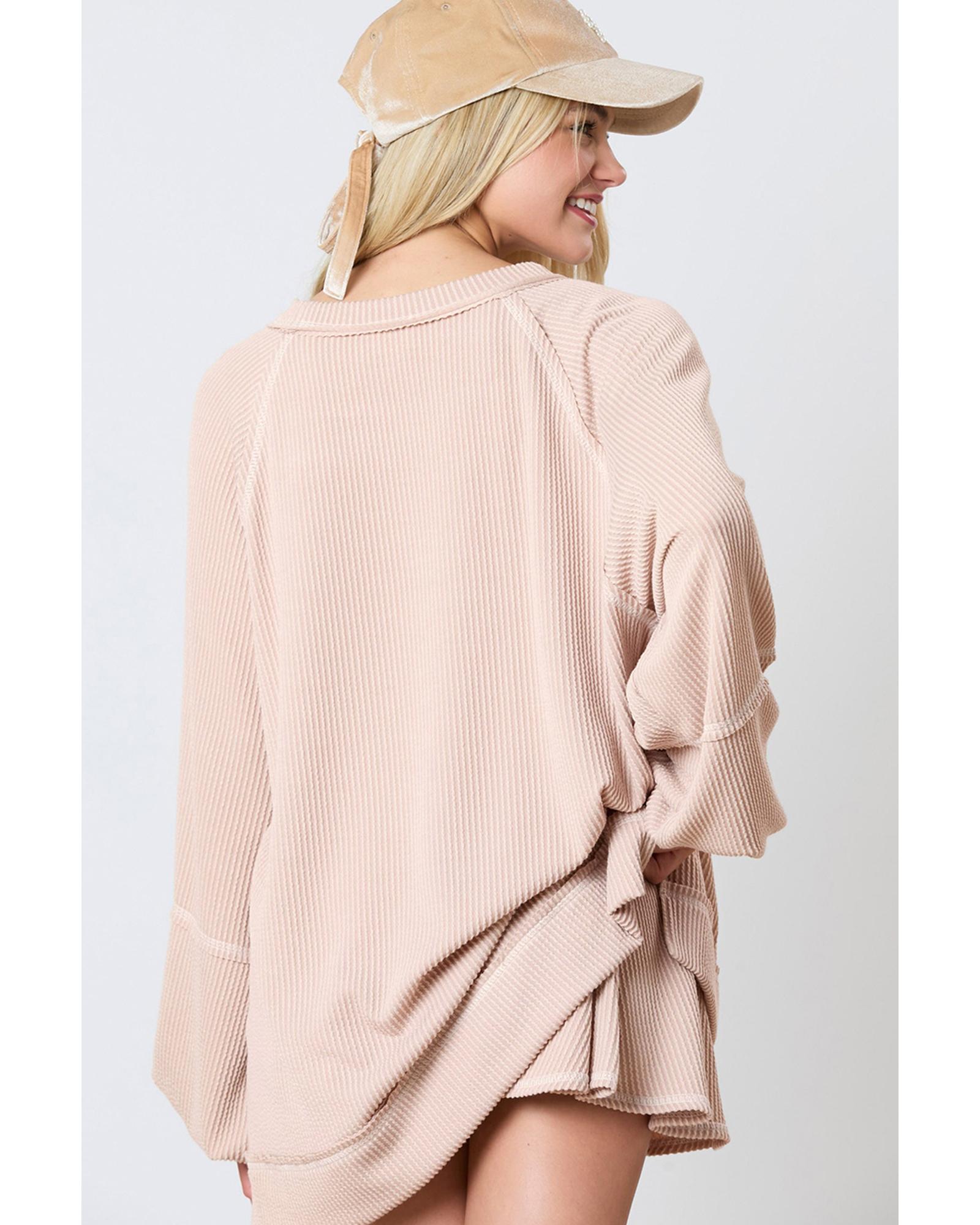 Jet Stream Color Contrast Ribbed Loose Fit Long Sleeve Top – XL