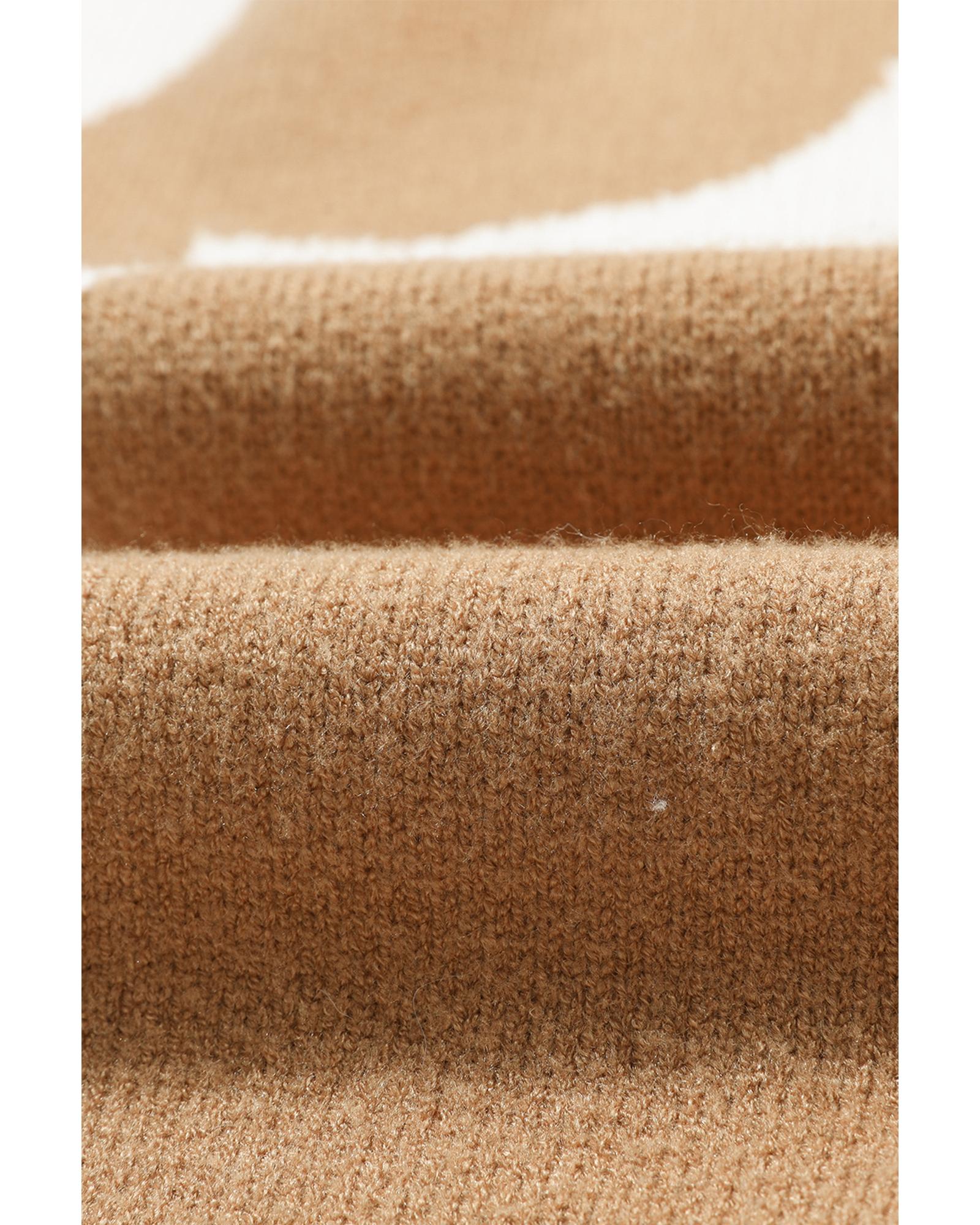 Khaki Big Flower Pattern Drop Shoulder Sweater – S