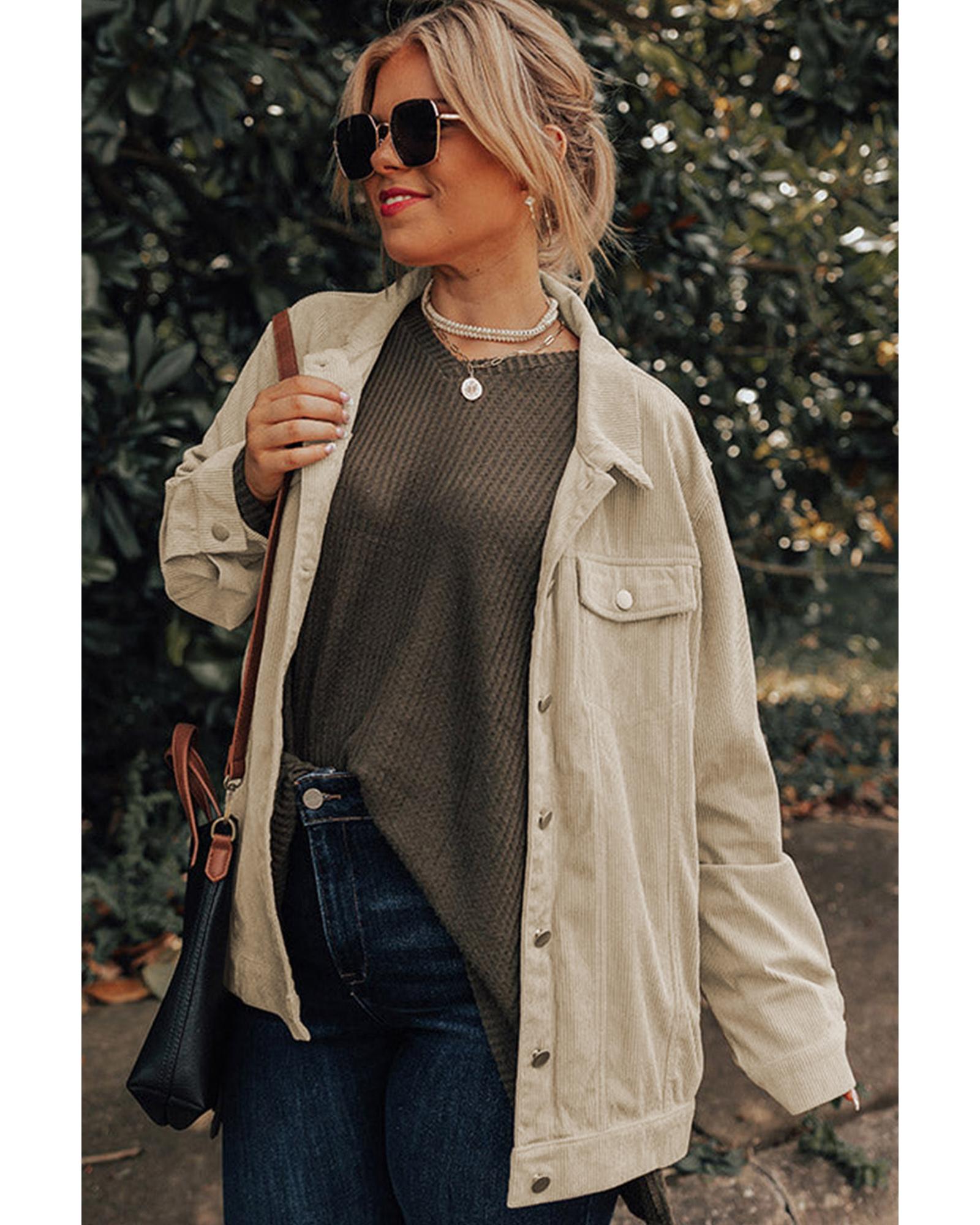 Khaki Plus Size Crochet Pattern Back Corduroy Jacket – 1X