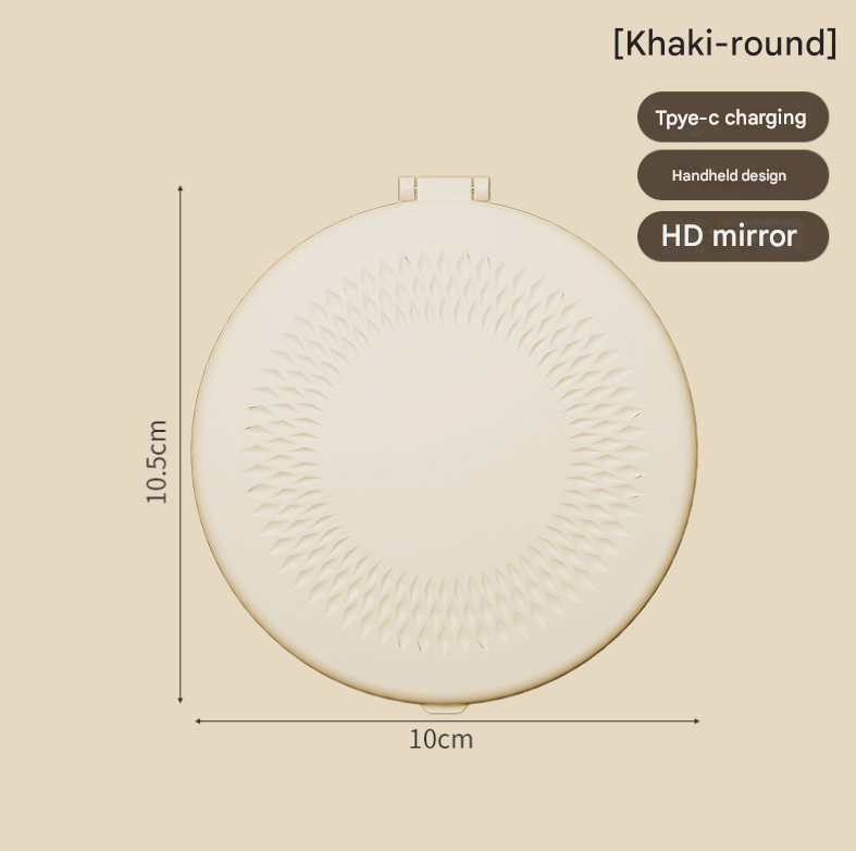 Khaki Portable LED Makeup Mirror with Tricolor Lights – Rechargeable Folding Travel Mirror