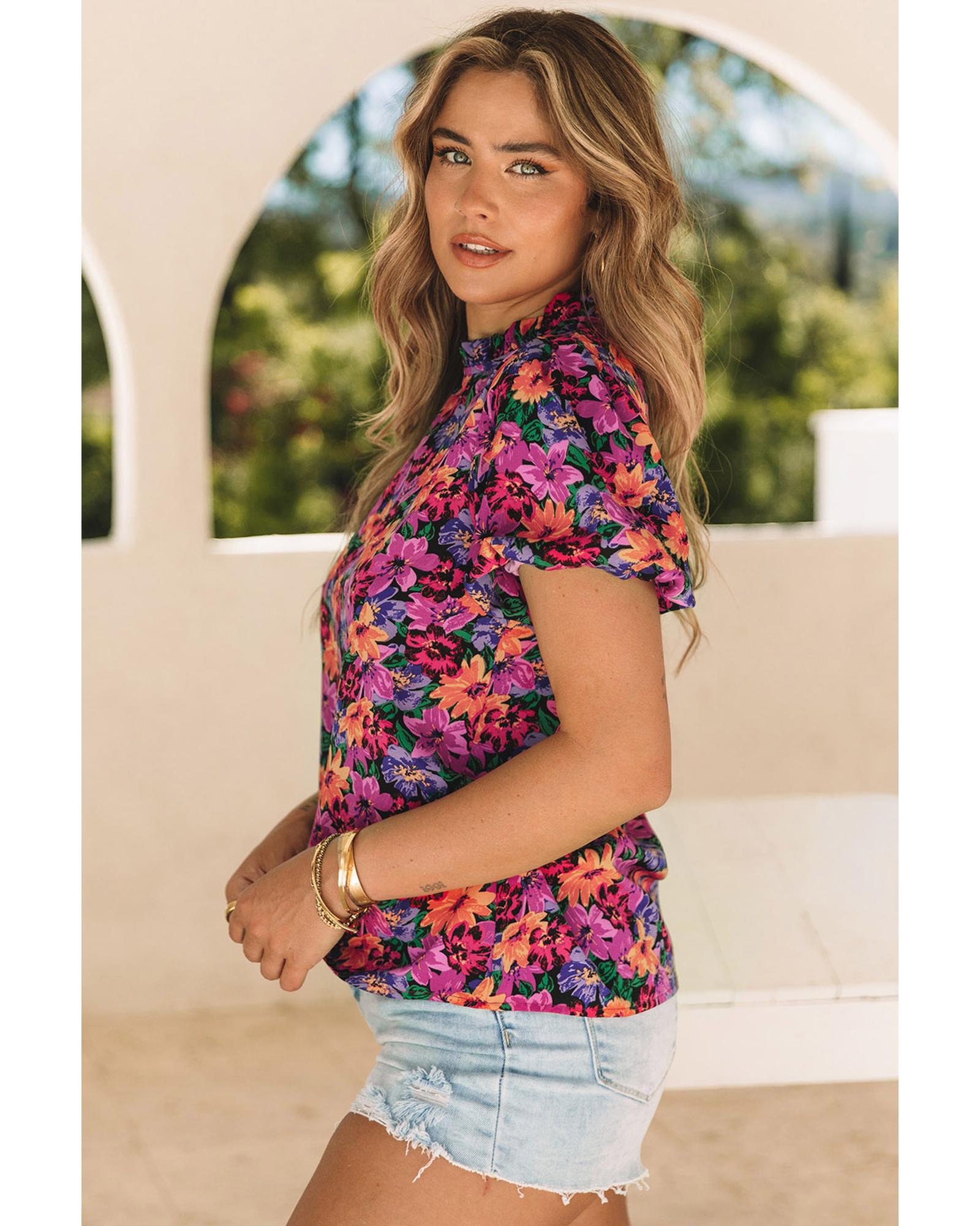 Azura Exchange Floral Print Bubble Sleeve Shirt – S