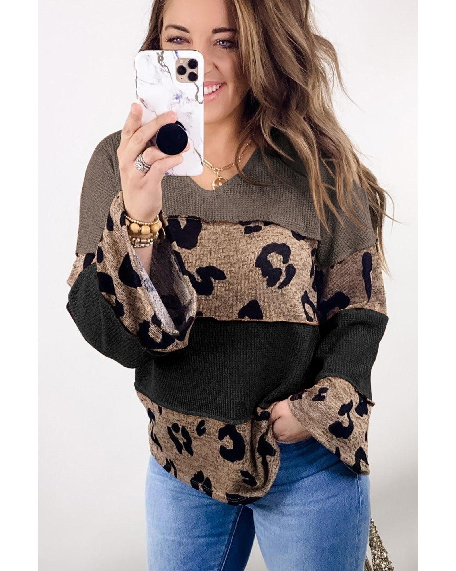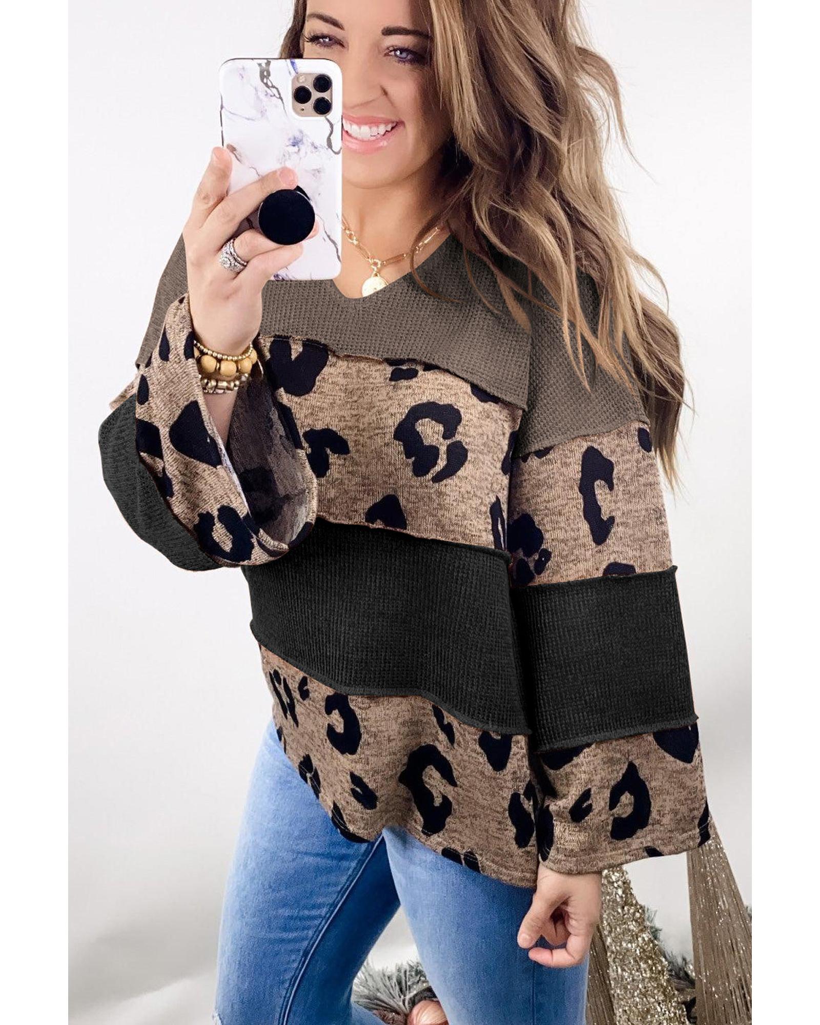 Multicolour Colorblock Patchwork V-Neck Loose Sleeve Knit Top – S