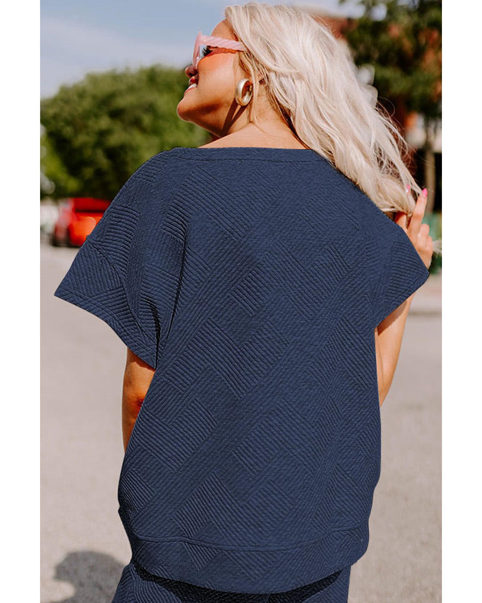 Navy Blue Textured Loose Fit T Shirt and Drawstring Pants Set – 2XL