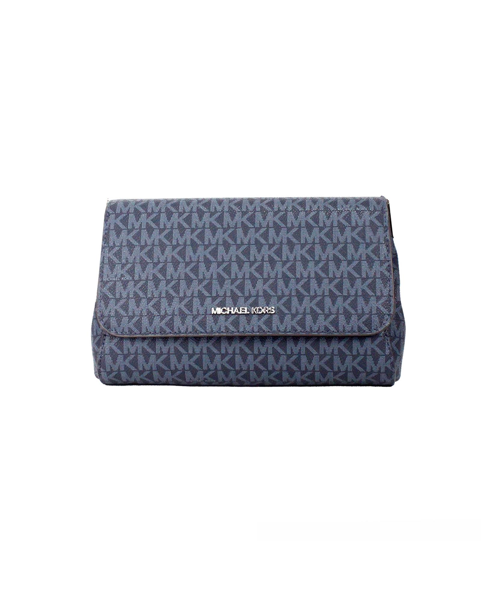 Michael Kors Women’s Jet Set Medium Navy Blue PVC Convertible Pouchette Crossbody Bag – One Size