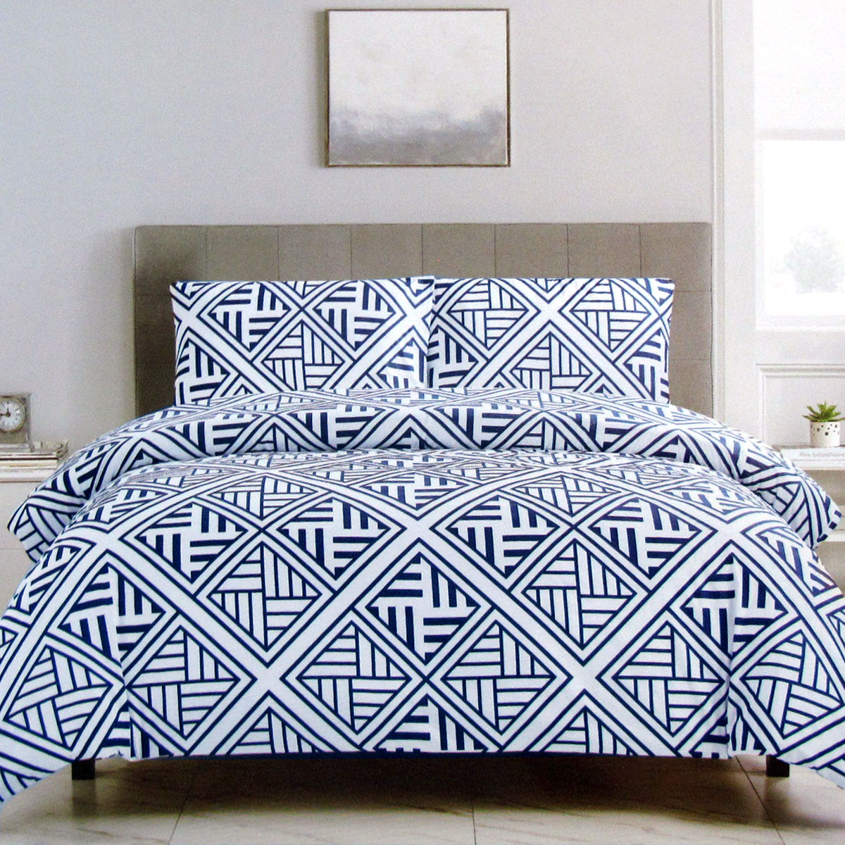 Artex Navy Enzi Geometric Pattern Printed Microfiber Polyester Quilt Cover Set Queen
