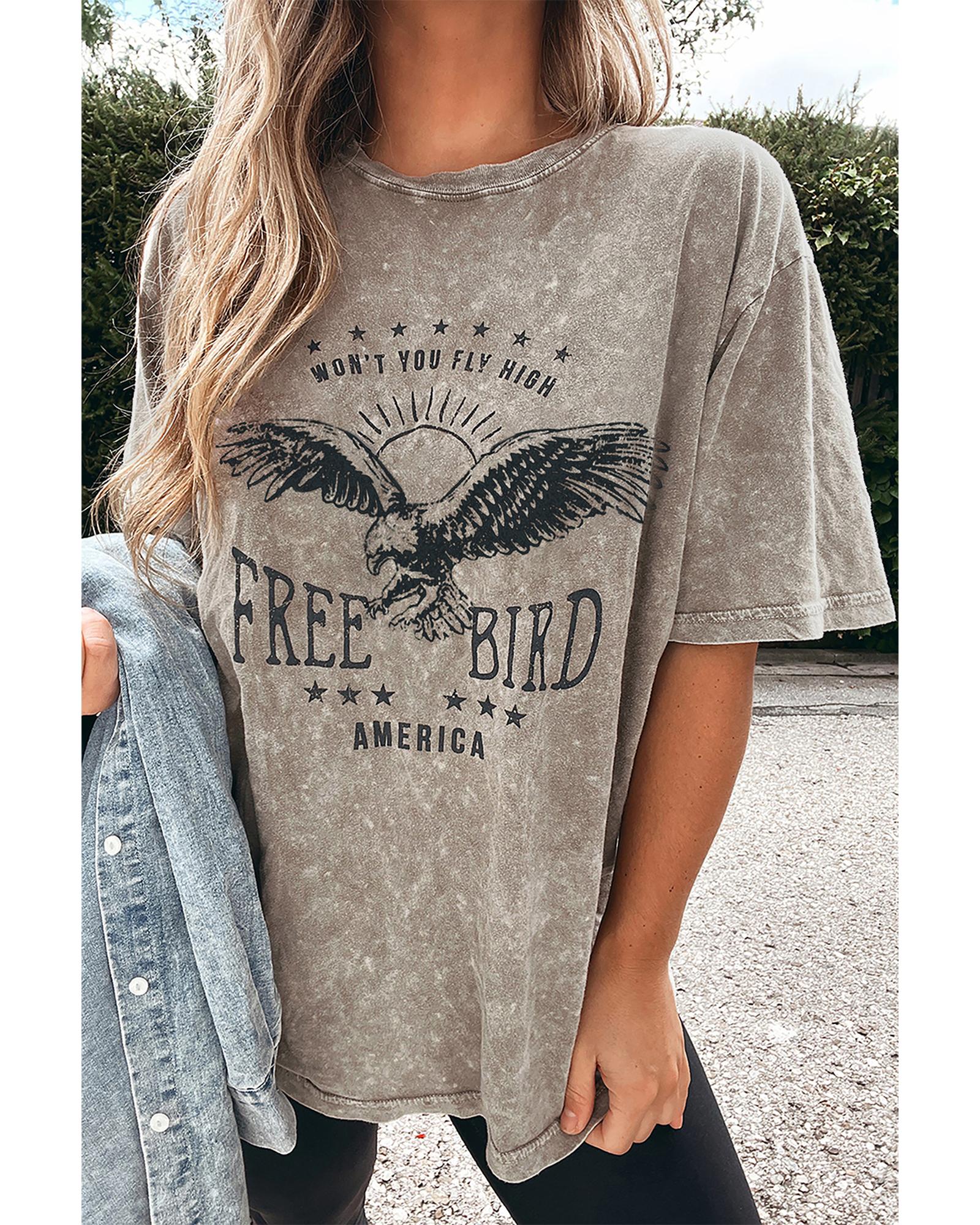 Parchment AMERICA FREE BIRD Vintage Graphic Mineral Washed Tee – S