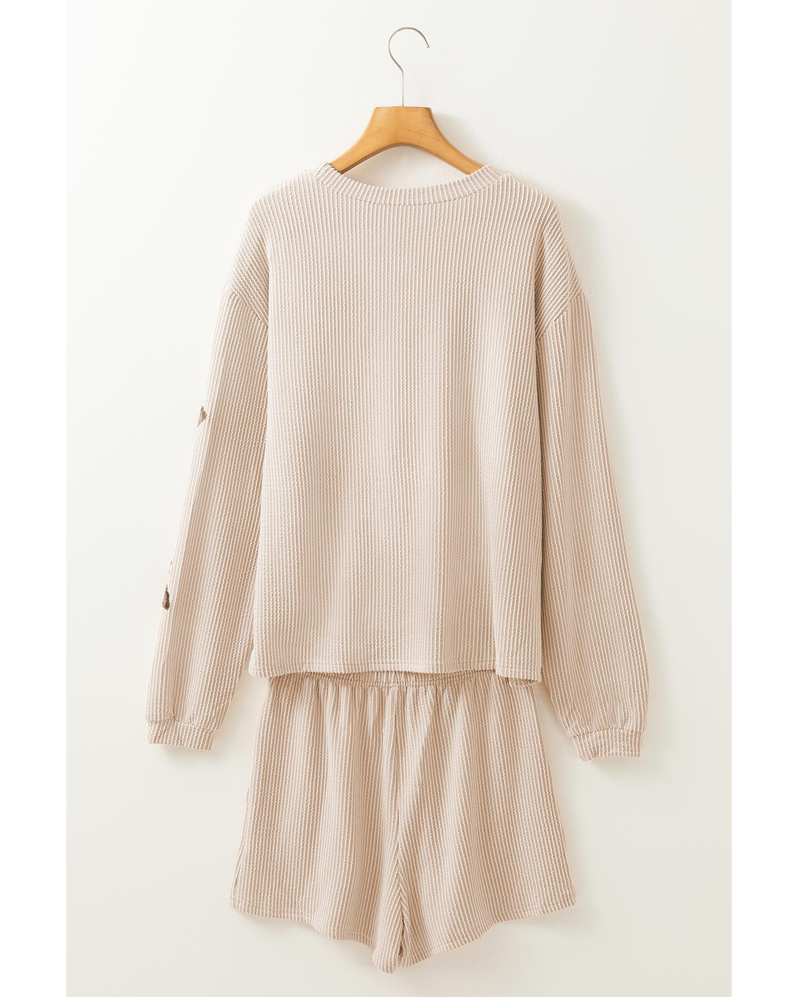 Parchment Textured Long Sleeve T Shirt and Pants Lounge Set – L