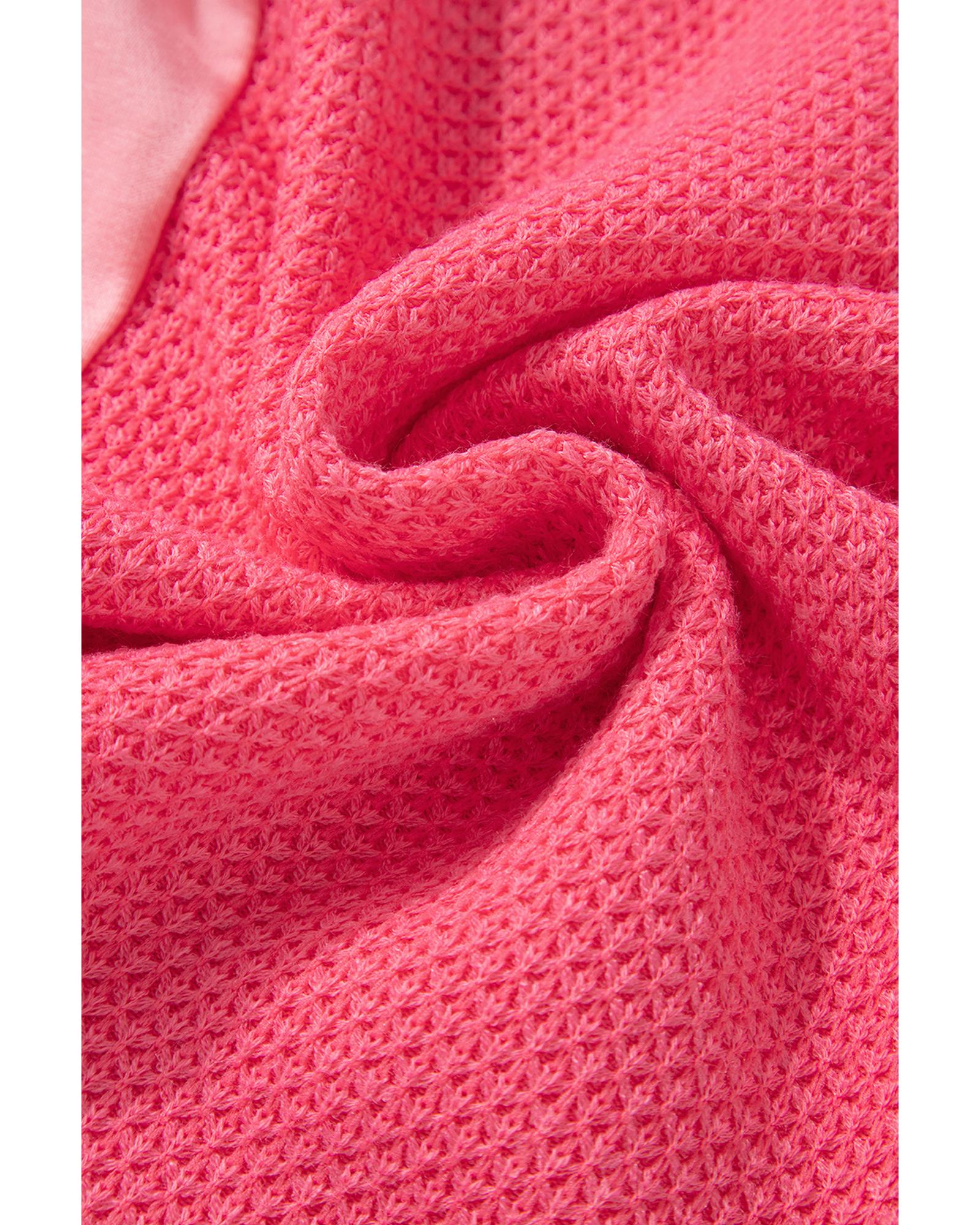 Peach Blossom Two Tone Contrast Waffle Knit Buttoned Loose Shacket – XL