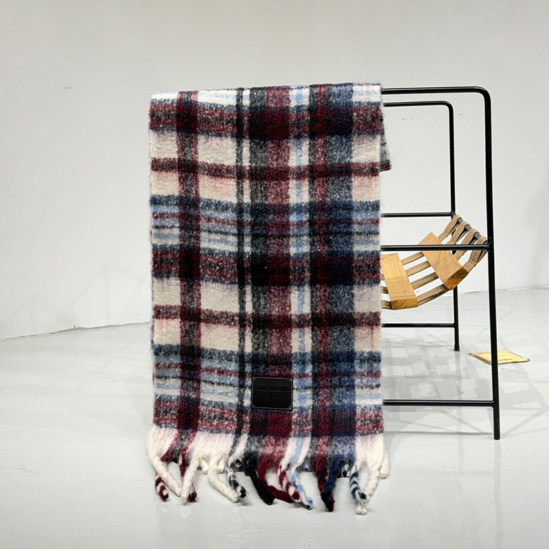Red-blue Plaid Color-Block Women’s Scarf – Autumn/Winter Thick Warm Neck Wrap with Tassels