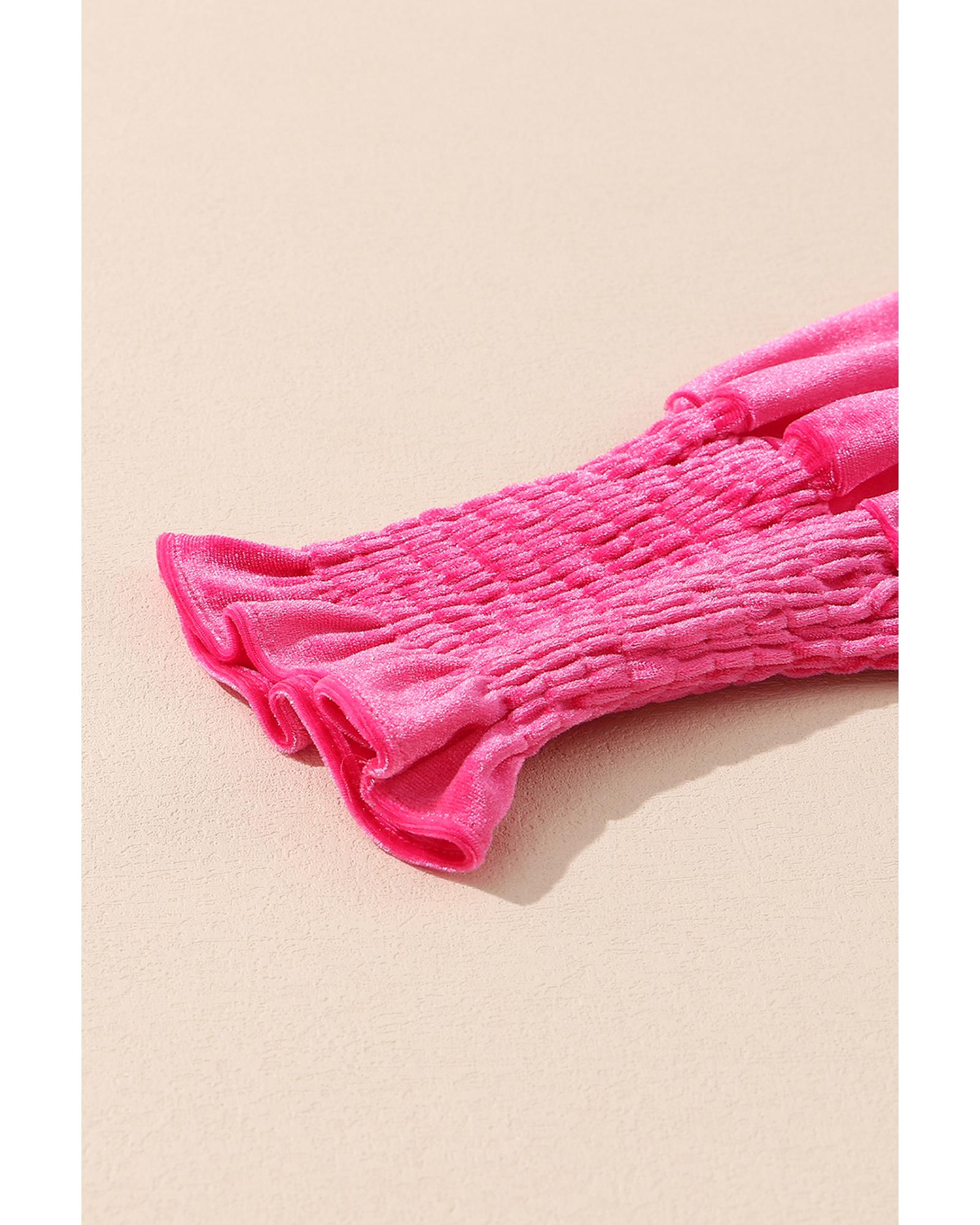 Rose Frilled Neck Smocked Bodice Velvet Dress – XL