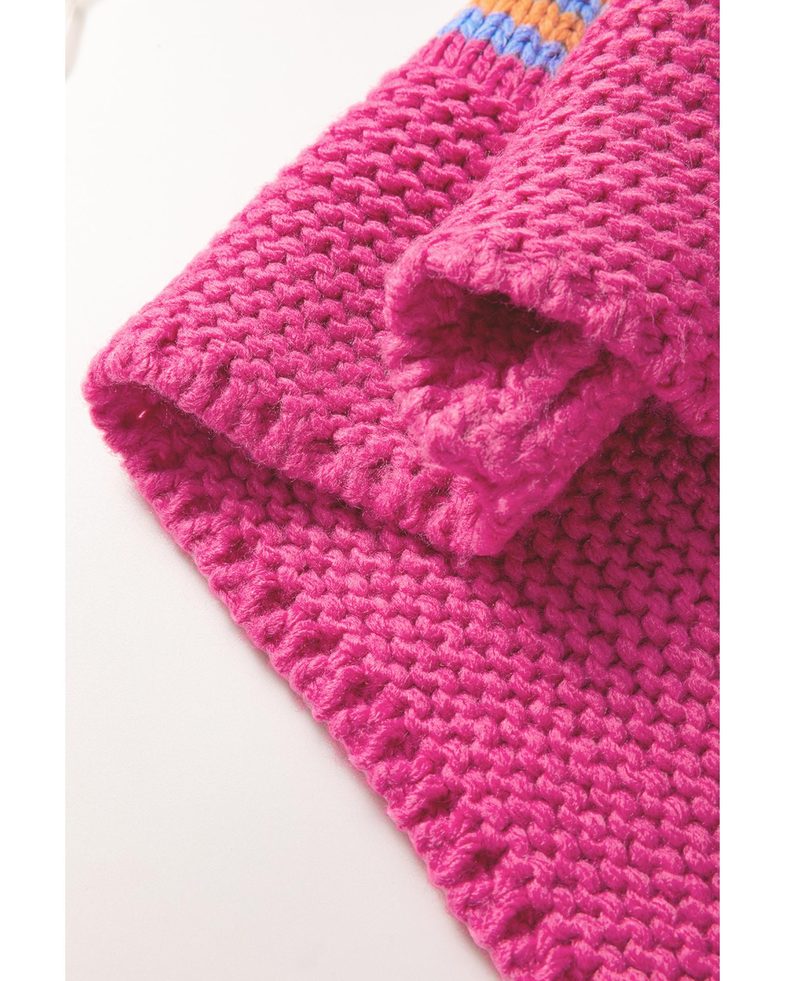 Rose Stripe Color Block Collared V Neck Drop Shoulder Sweater – XL