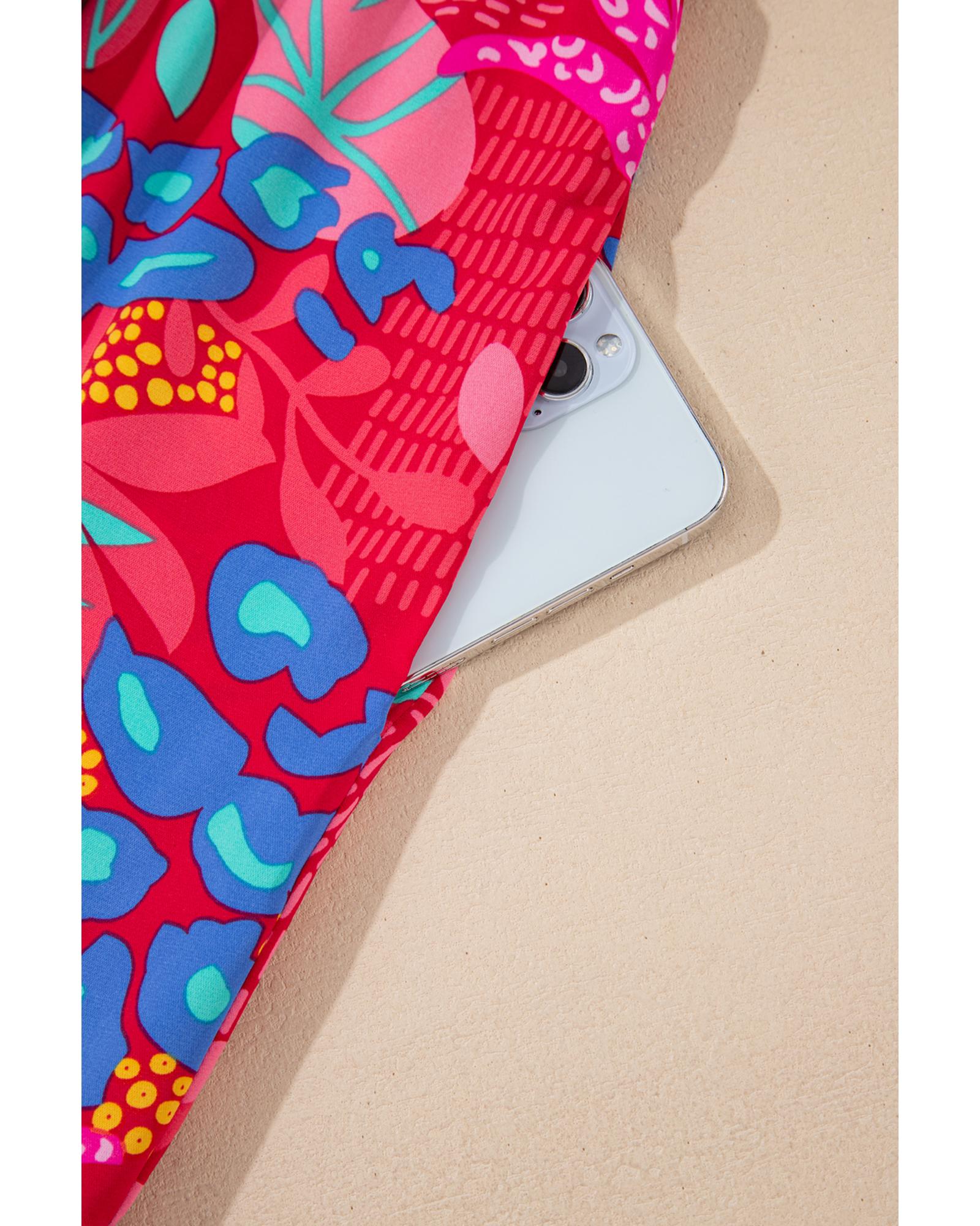Rose V Neck Ruffled Hem Floral Bottom Tankini Set – S