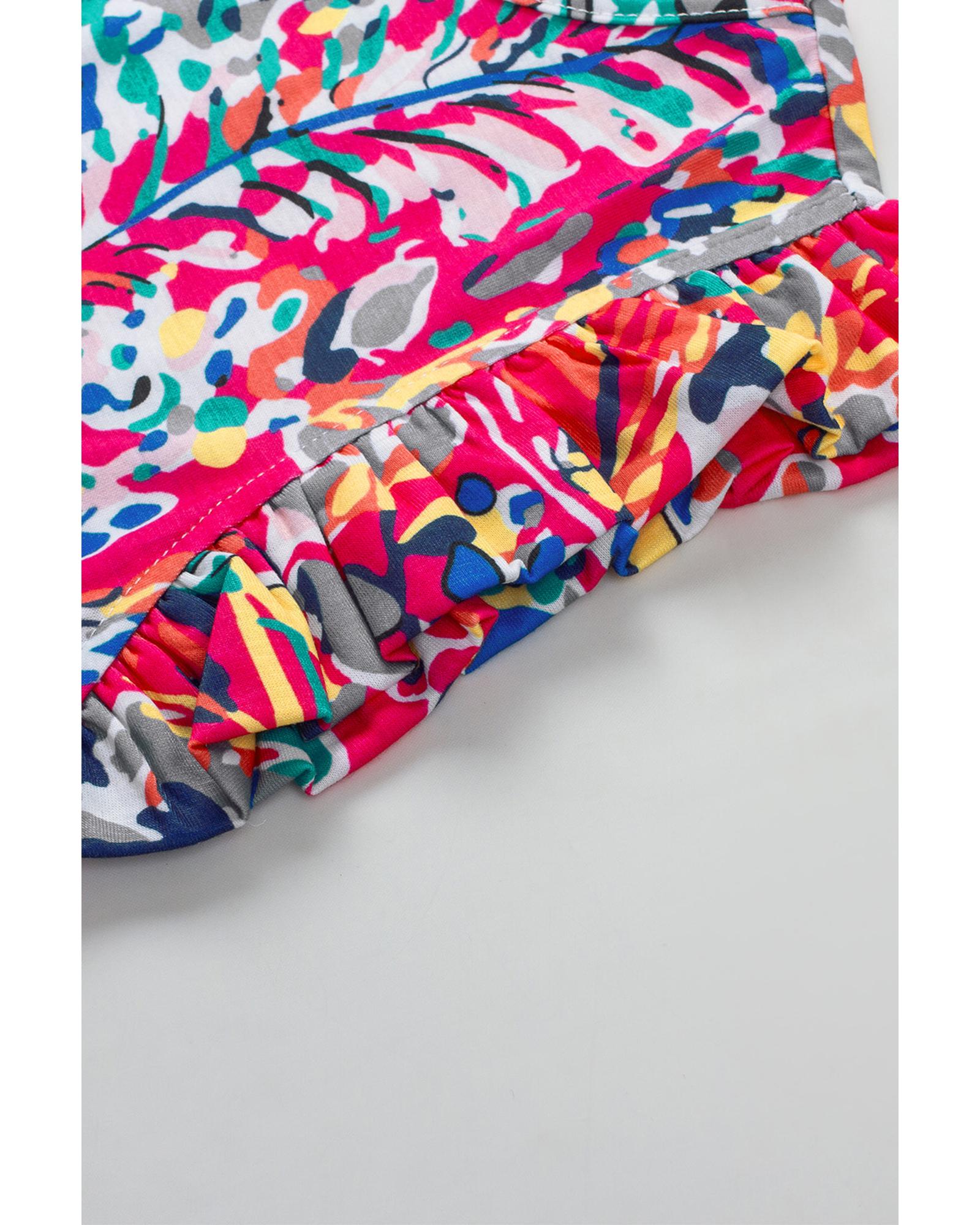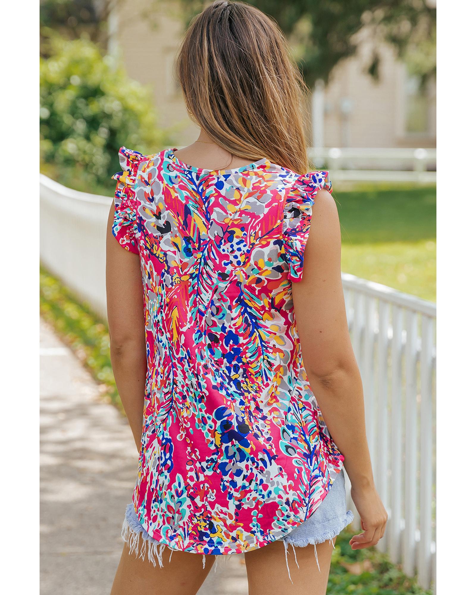 Rose Floral Ruffled Sleeve Ric-rac Trim Split Neck Loose Blouse – XL