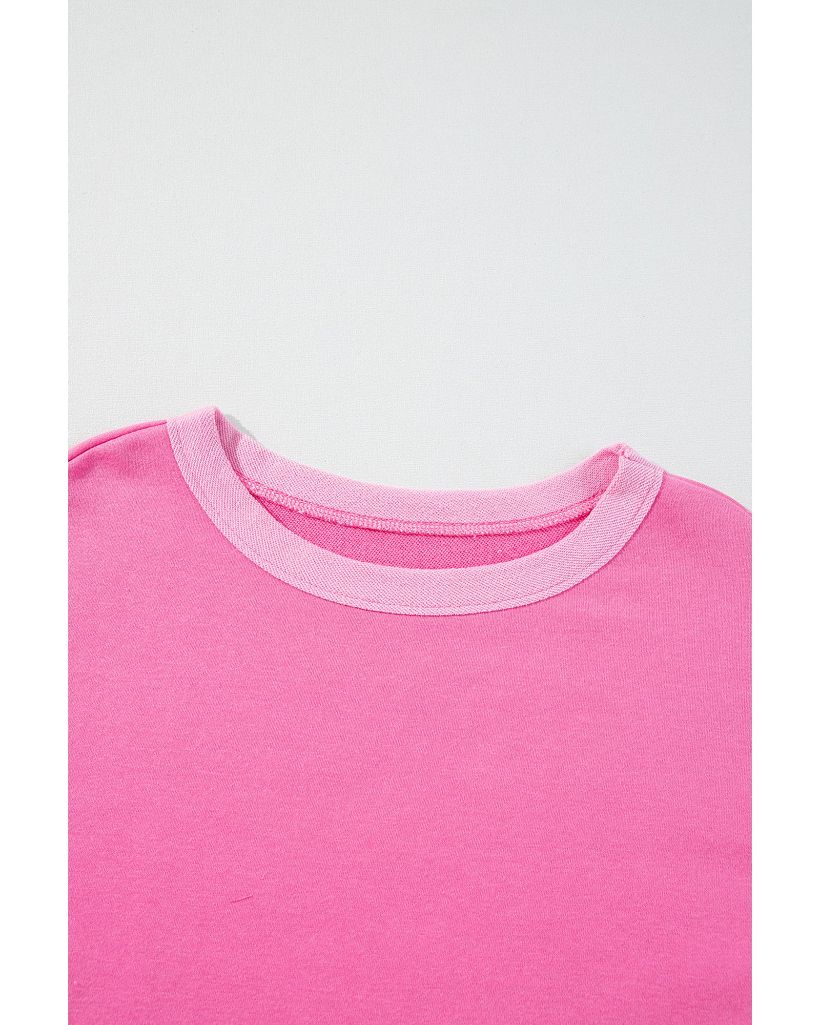Sachet Pink High Low Patchwork Long Sleeve Top and Shorts Set – XL