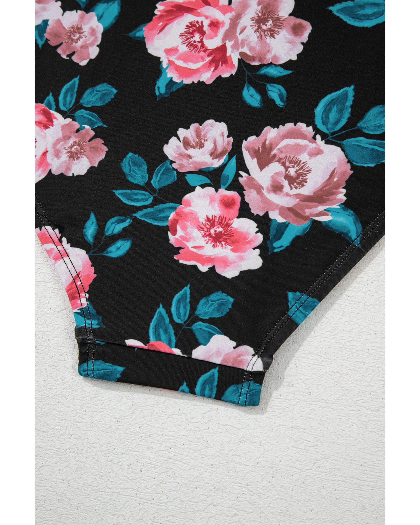Sea Green Solid Ruffled Square Neck Swim Top and Floral Shorts Bikini Set – XL