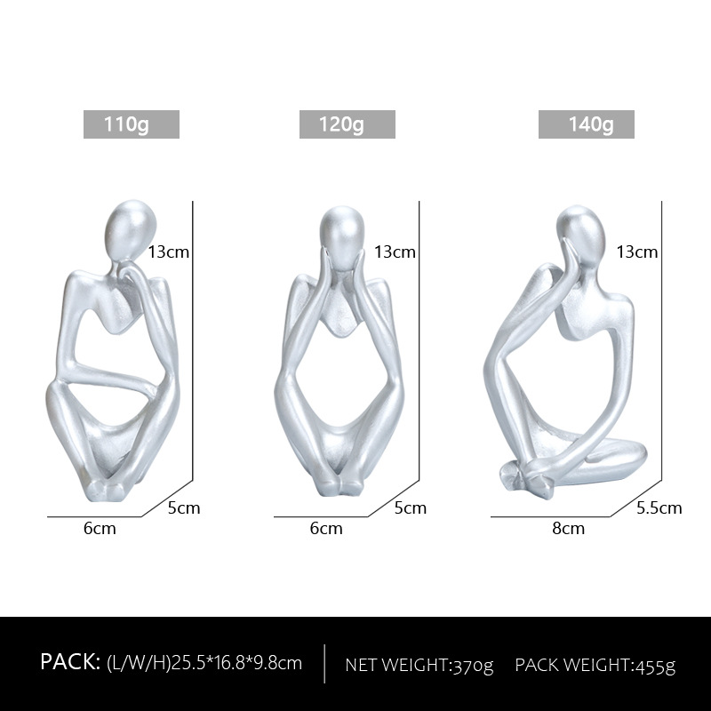 Abstract Thinker Sculpture Set – Silver Resin Figurines, Modern Art Home Decor, Set of 3