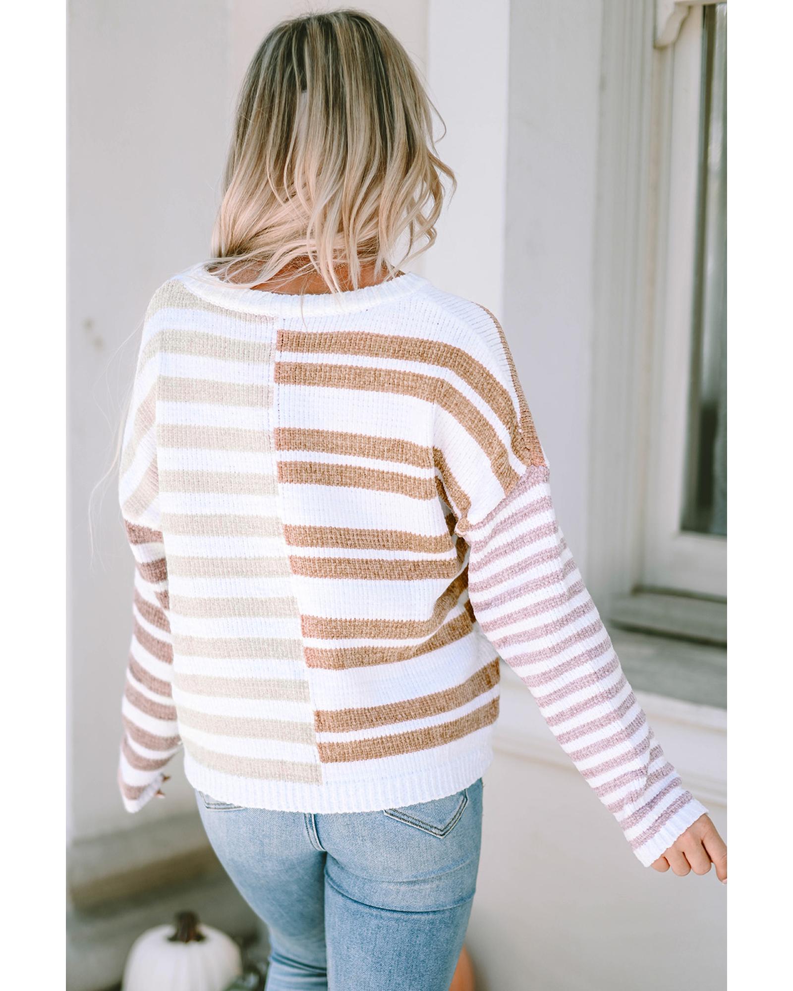 Contrast Trimmed Striped Drop Shoulder Sweater – XL