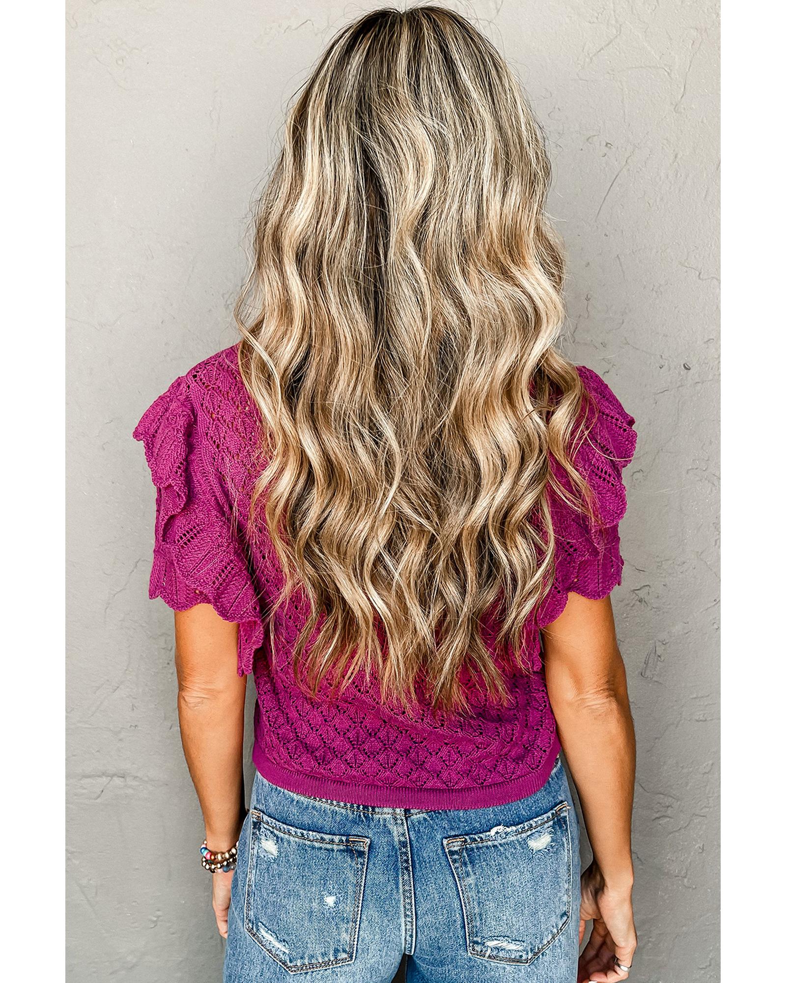 Violet Ruffled Short Sleeve Textured Knit Sweater – L