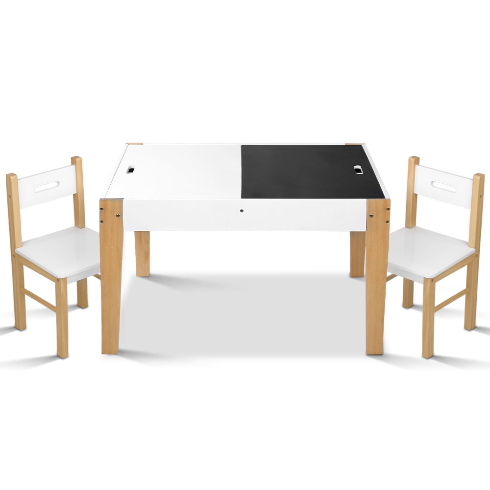 Keezi 3PCS Kids Table and Chairs Set Storage Toys Play Activity Desk Chalkboard