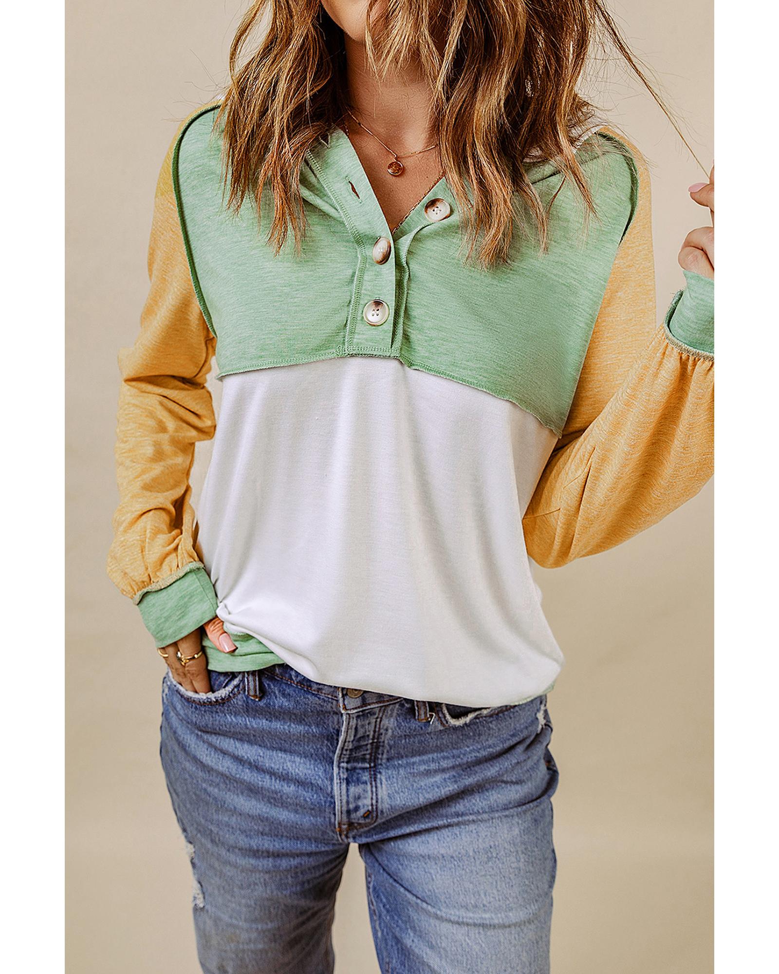 Azura Exchange Button Accent Colorblock Hoodie – S