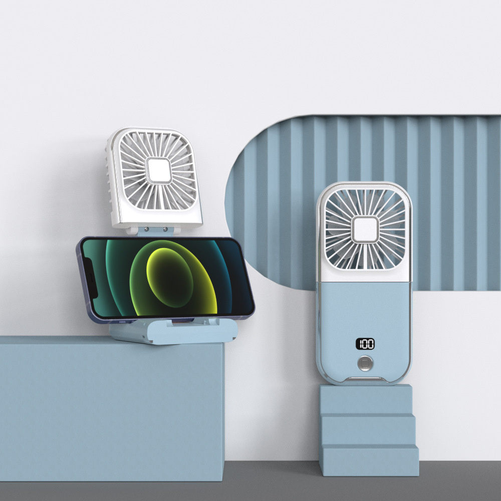 White and blue combination Portable Handheld Fan with Neck Strap & Phone Stand