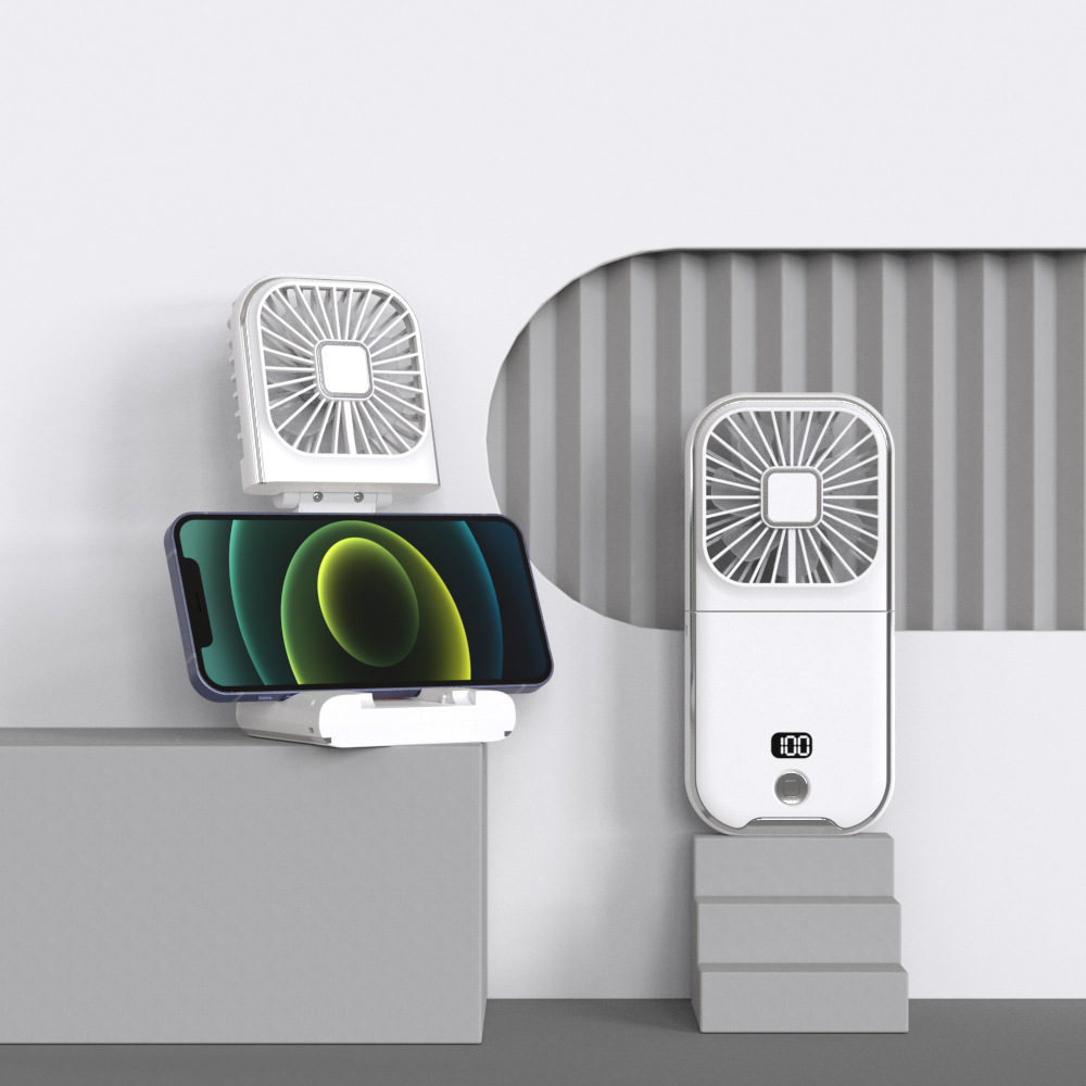 White Portable Handheld Fan with Neck Strap & Phone Stand