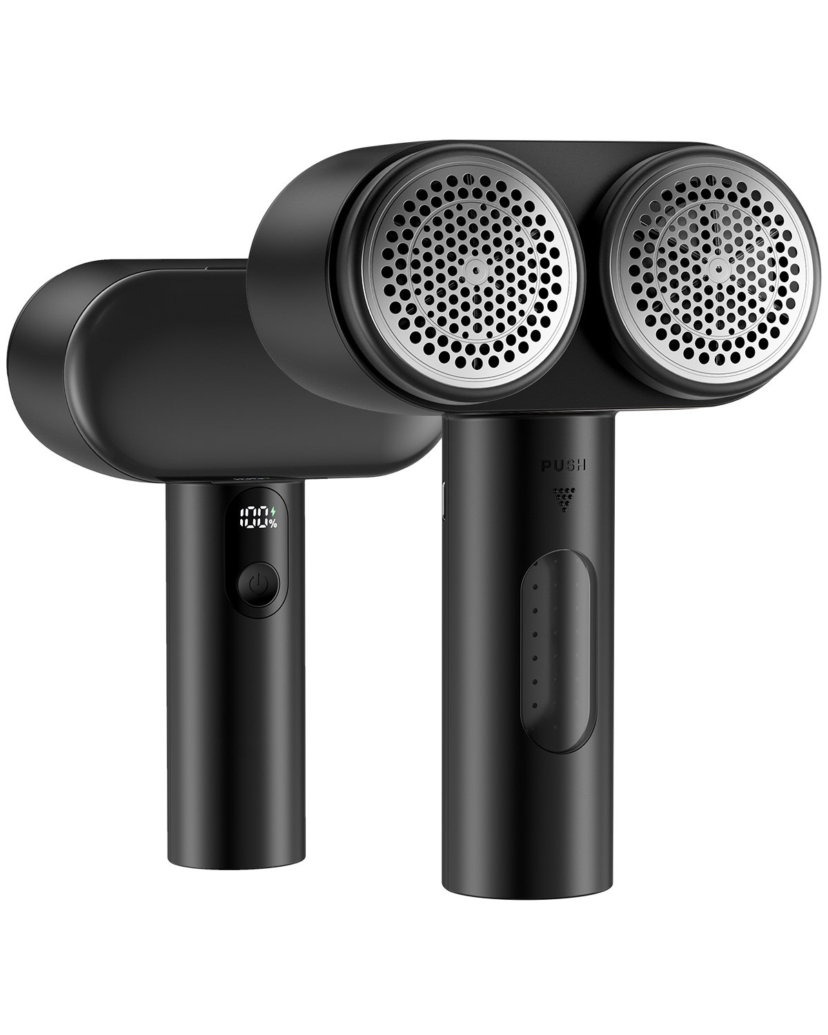 Dual-Head Electric Lint Remover – USB-C Rechargeable, LED Display, 5-Size Honeycomb Mesh(Black)