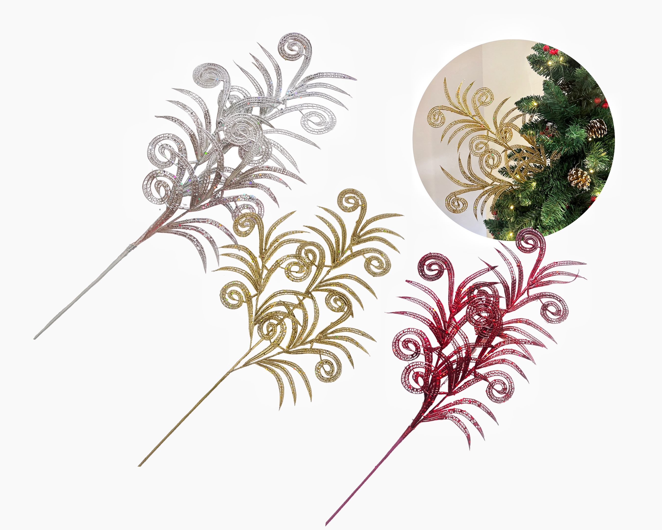 bulk 24 Xmas Metallic Glamour Curls Spray Assort 68cm