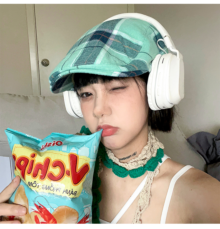 2-PCS Green Lightweight Checkered Flat Cap – Adjustable Retro Driver Hat for Men & Women