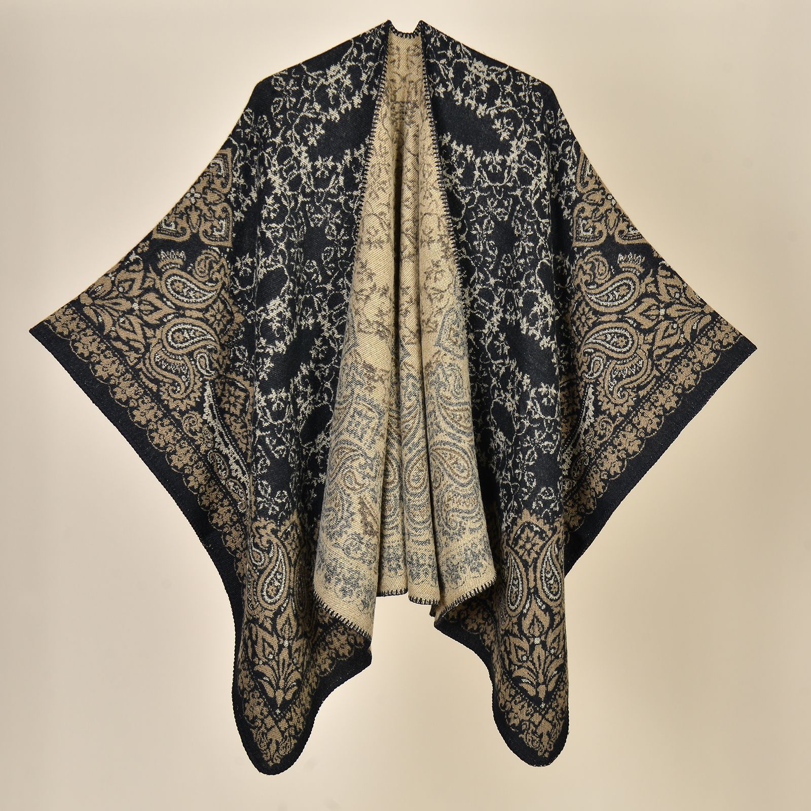 Cashew Red Soft Faux Cashmere Poncho Cape – Oversized Winter Shawl Wrap (130x150cm)