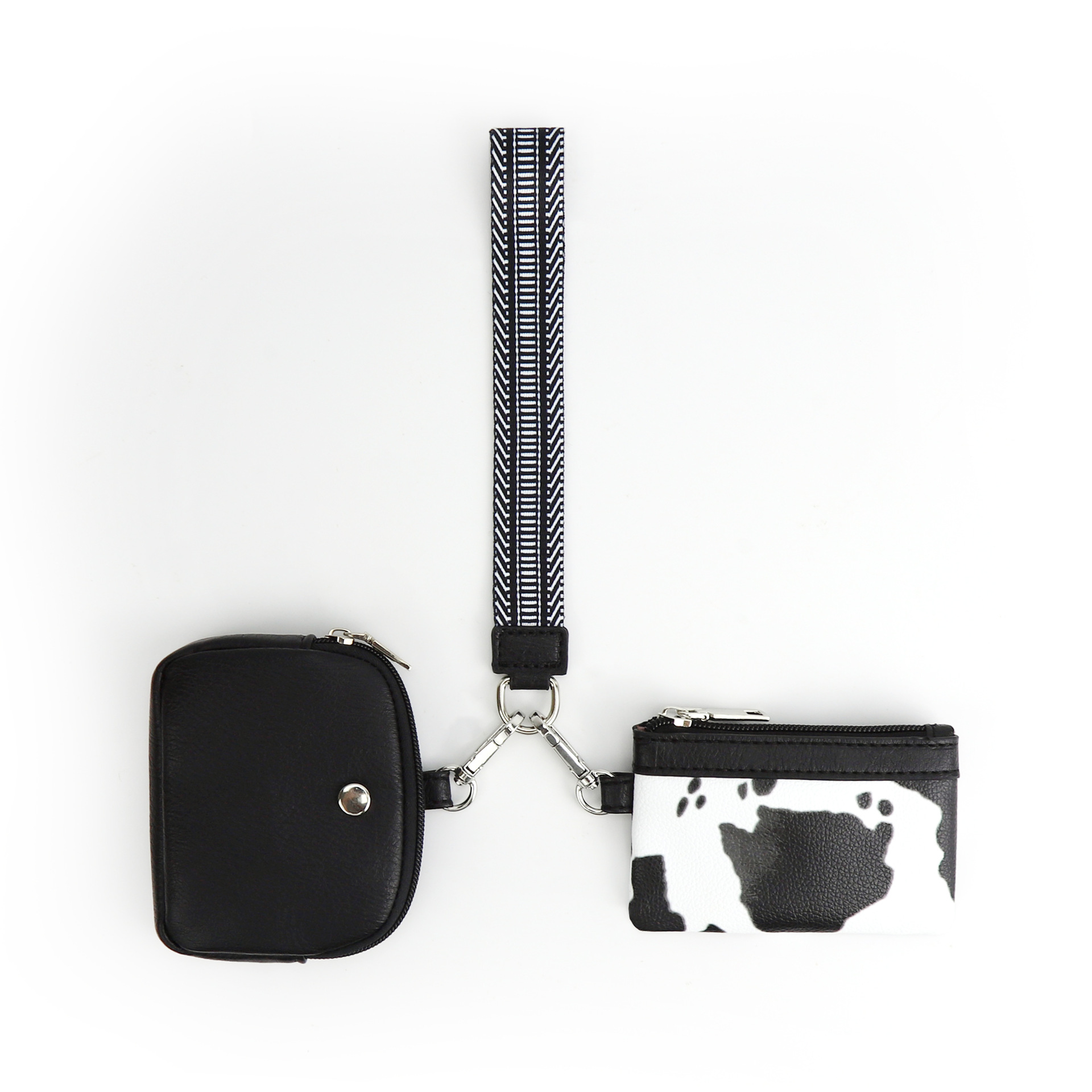 Cow Black Stylish Mini Wristlet Wallet – Nylon, Multi-Compartment Design