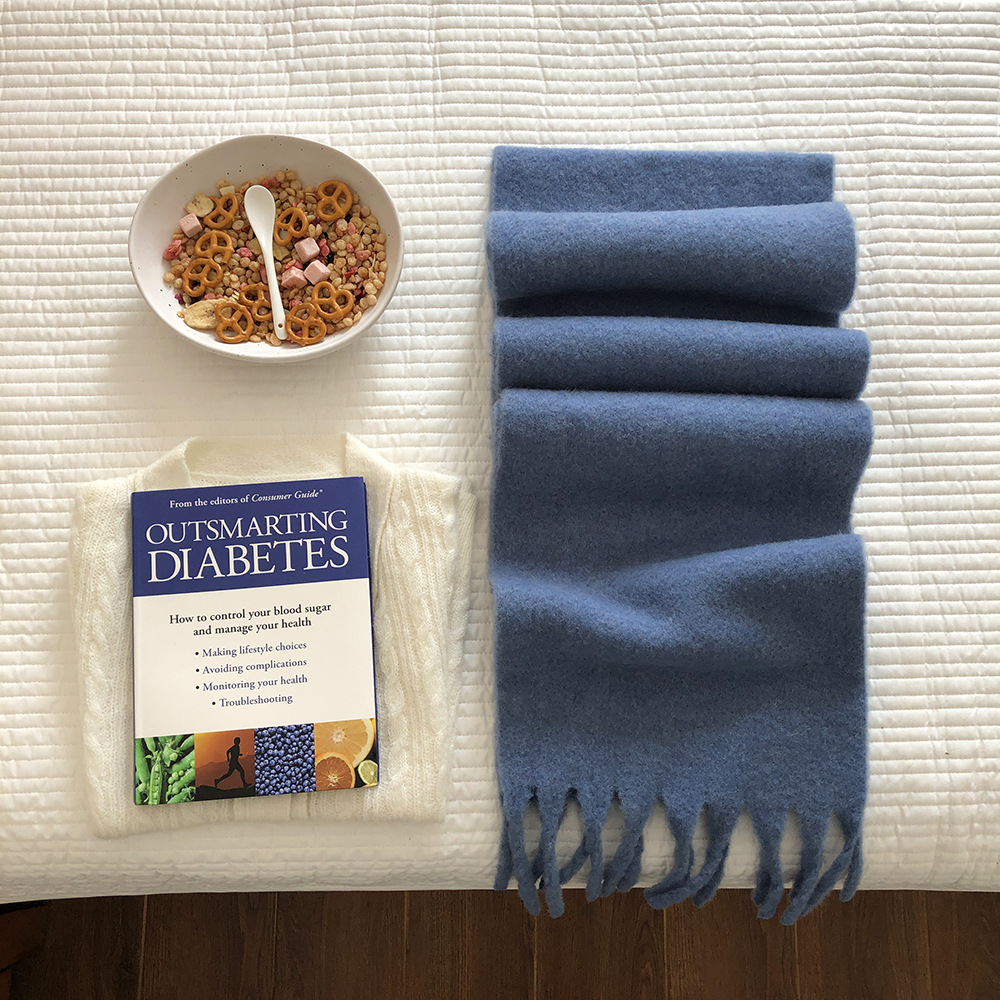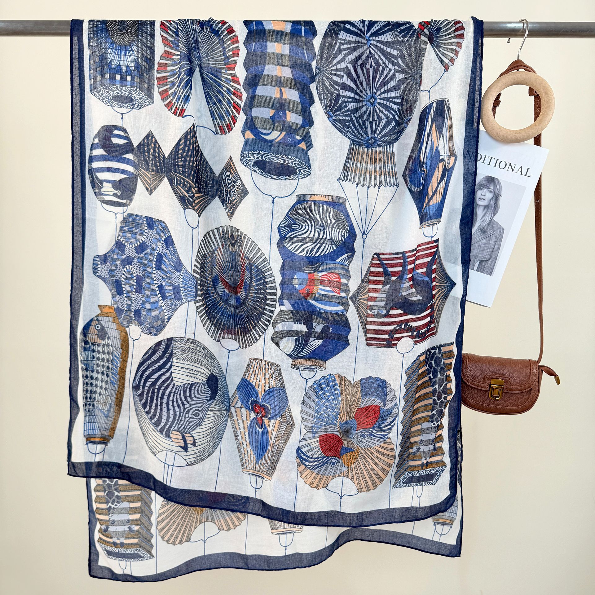 2-Piece Blue Border Retro Lantern Print Scarf – Fashionable Niche Design for Women