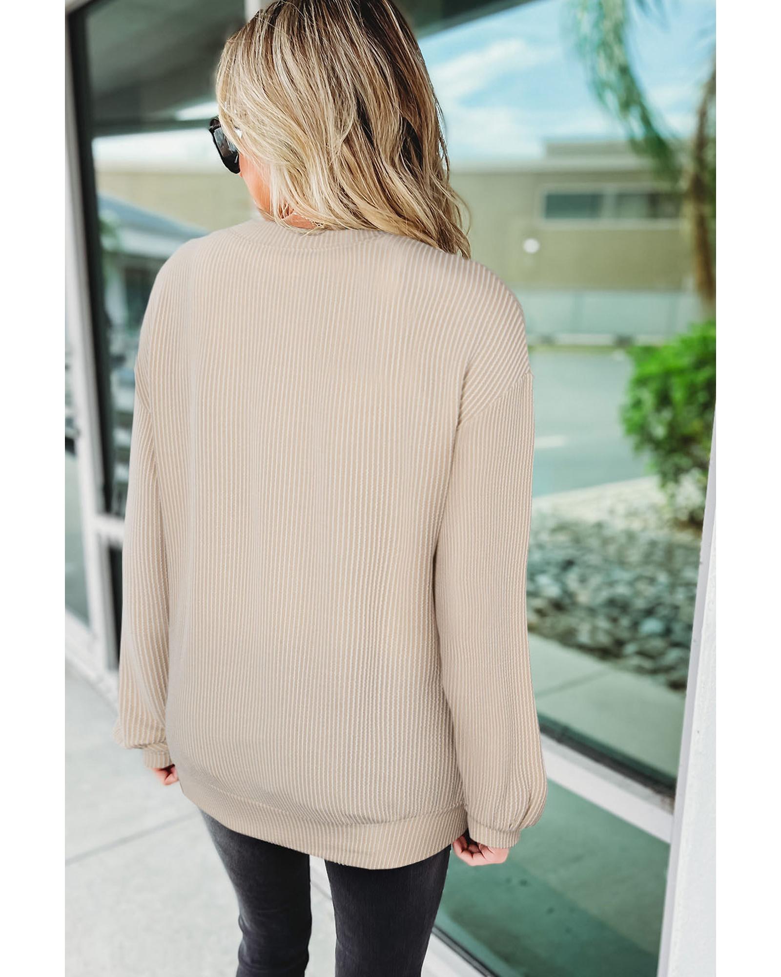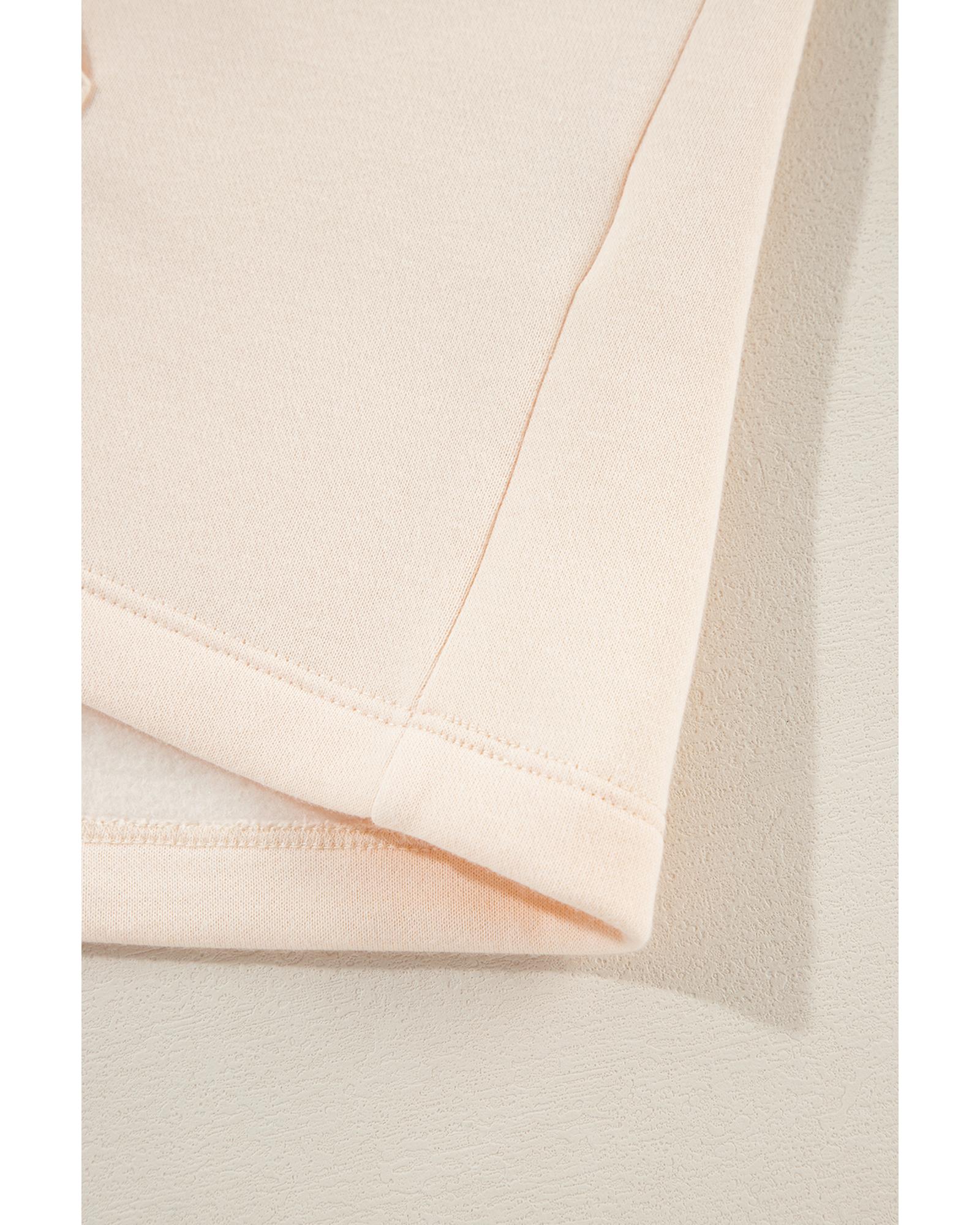 Apricot Quilted Buttoned Neckline Stand Neck Pullover Sweatshirt – L