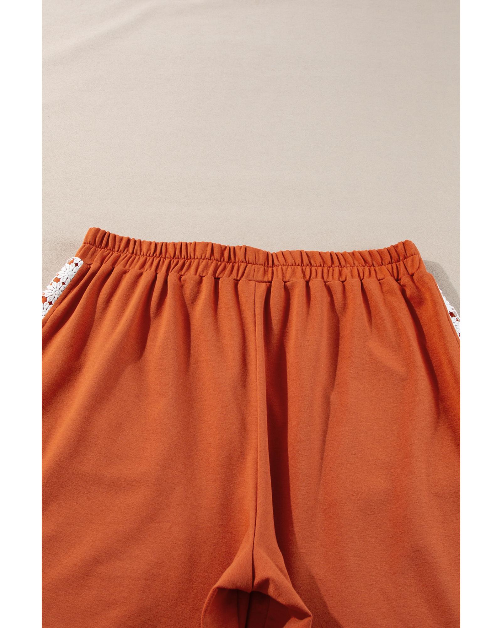 Azura Exchange Gold Flame Plus Size Floral Crochet Patch Drawstring Wide Leg Pants – 1X