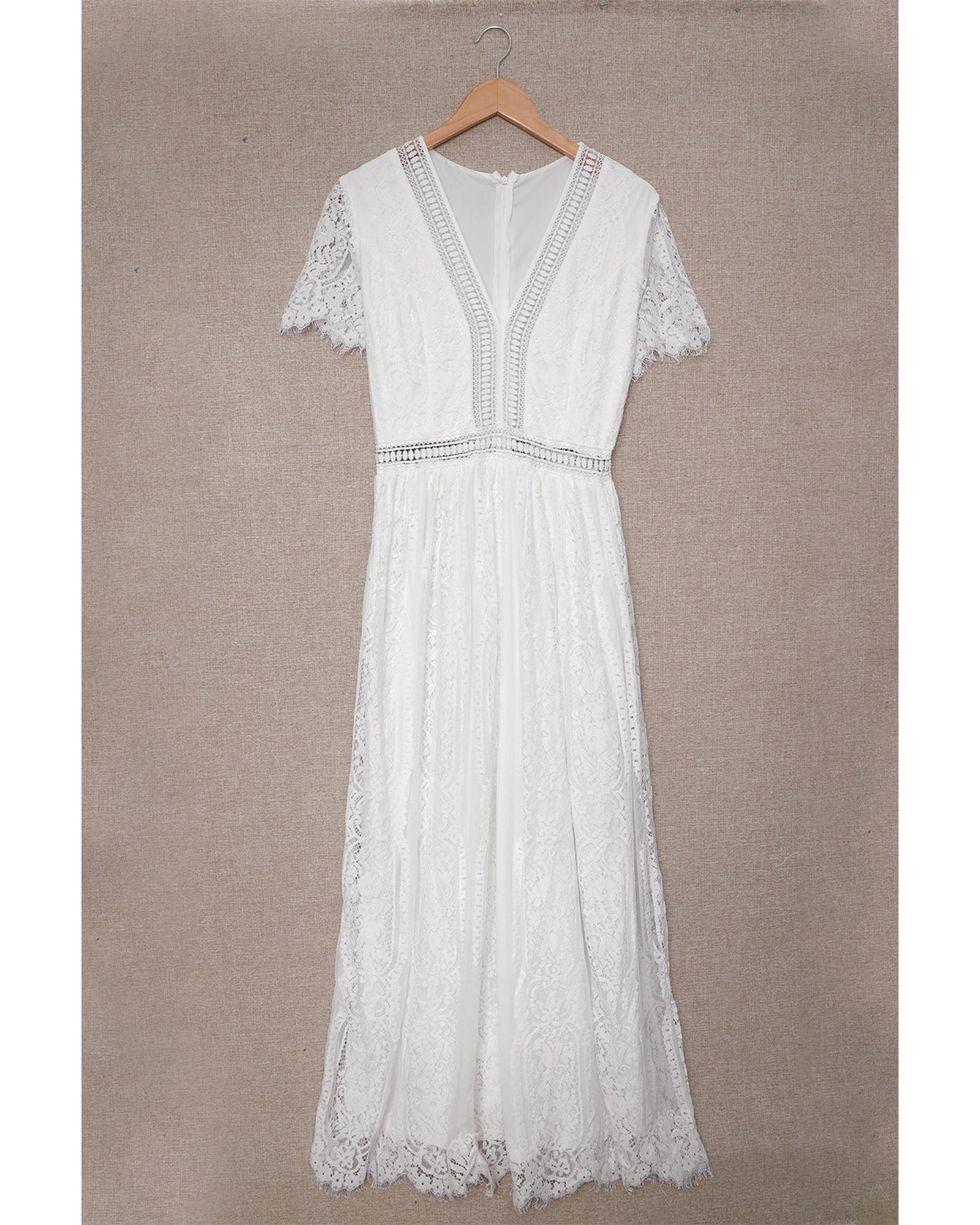 Azura Exchange White Blue Fill Your Heart Lace Maxi Dress – S