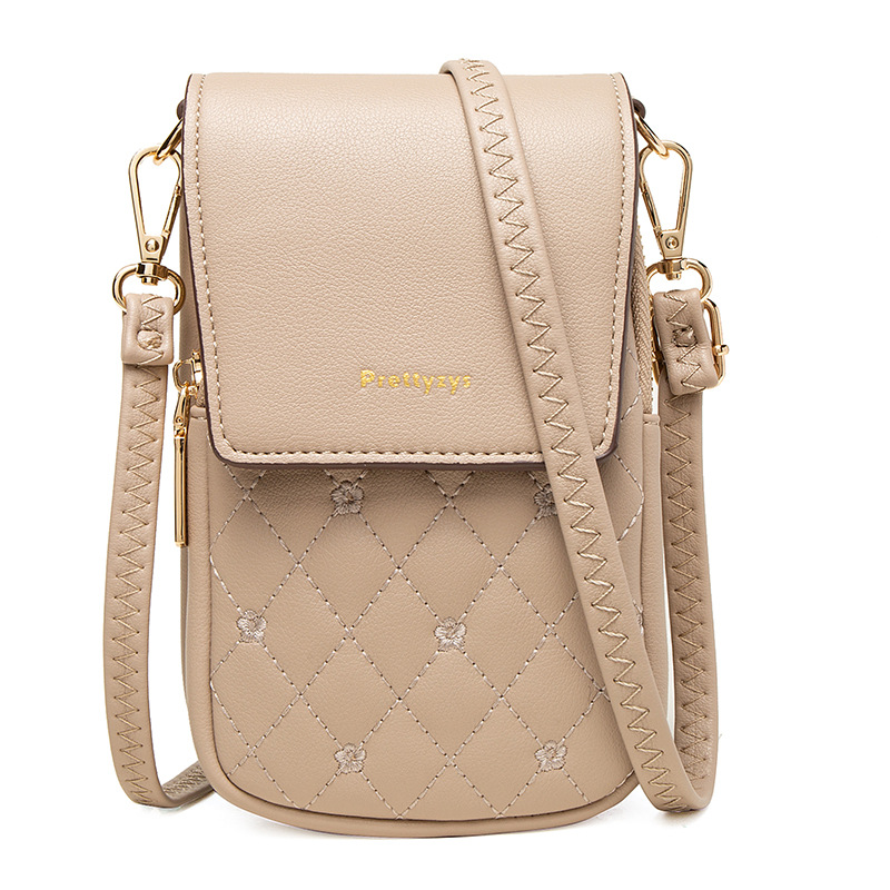 Beige Elegant Leather Shoulder Bag – Compact Handbag with Adjustable Strap