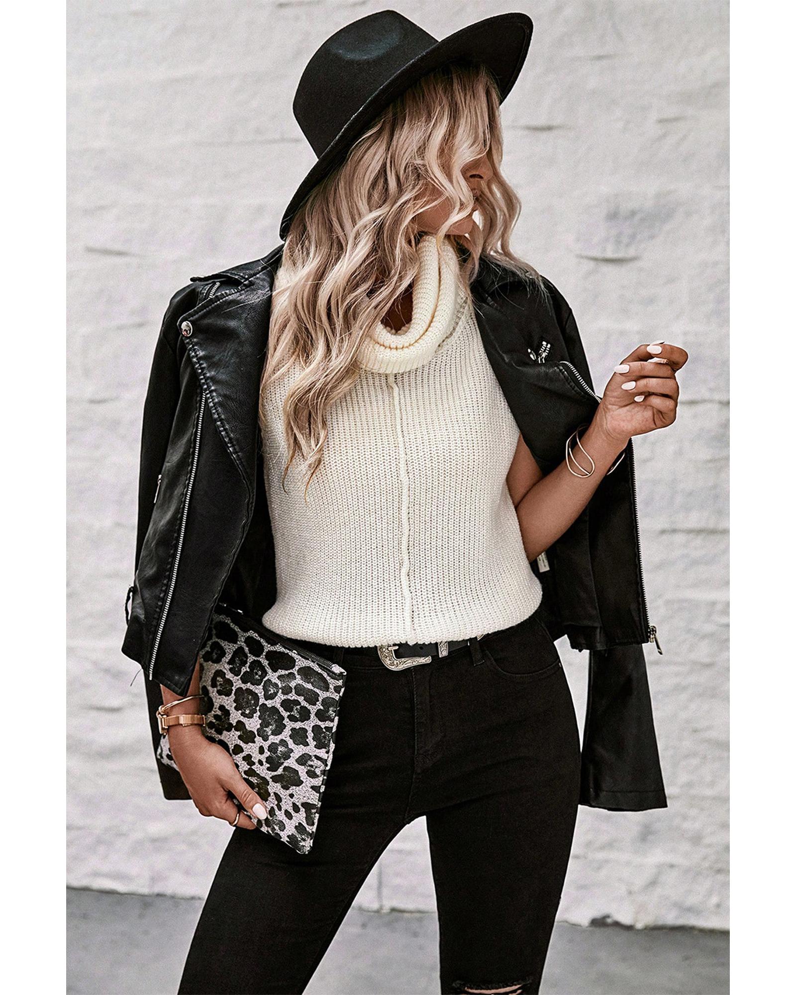 White Central Seam Cowl Neck Sweater Vest – XL