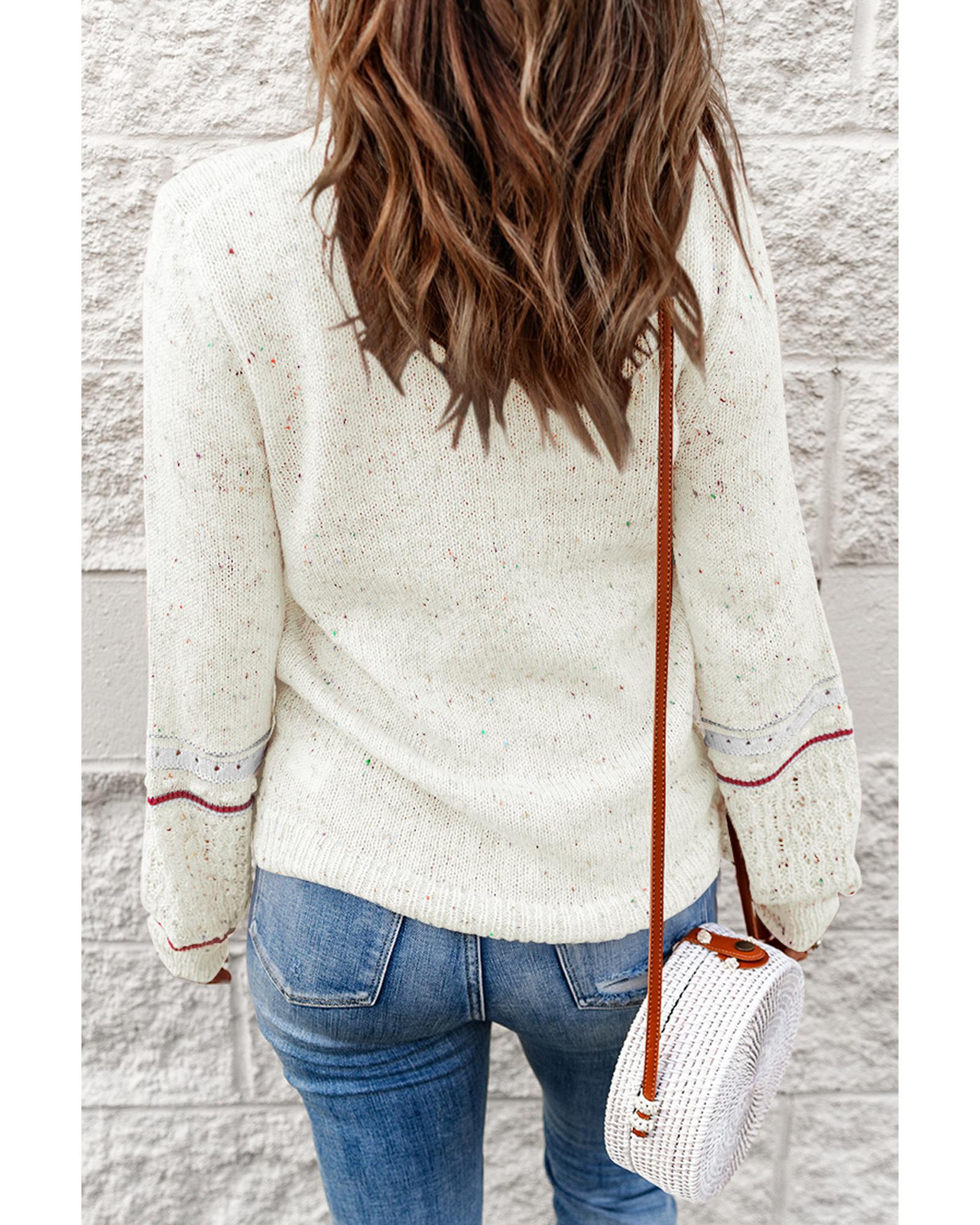 White Pilling Detail Patterned Sleeve Sweater – XL