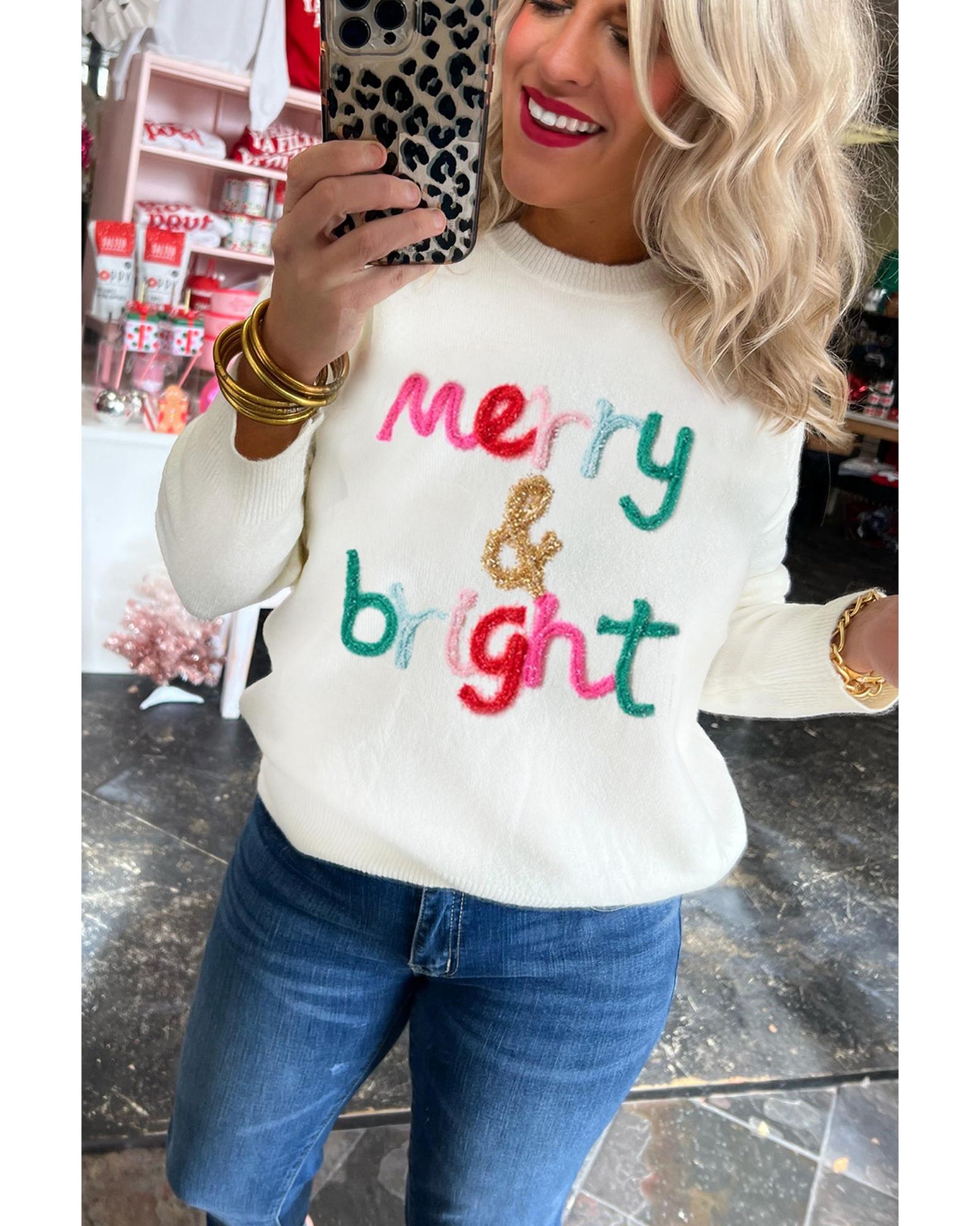 White Knitted YEEHAW Stitch Edge Crew Neck Sweater T Shirt – L