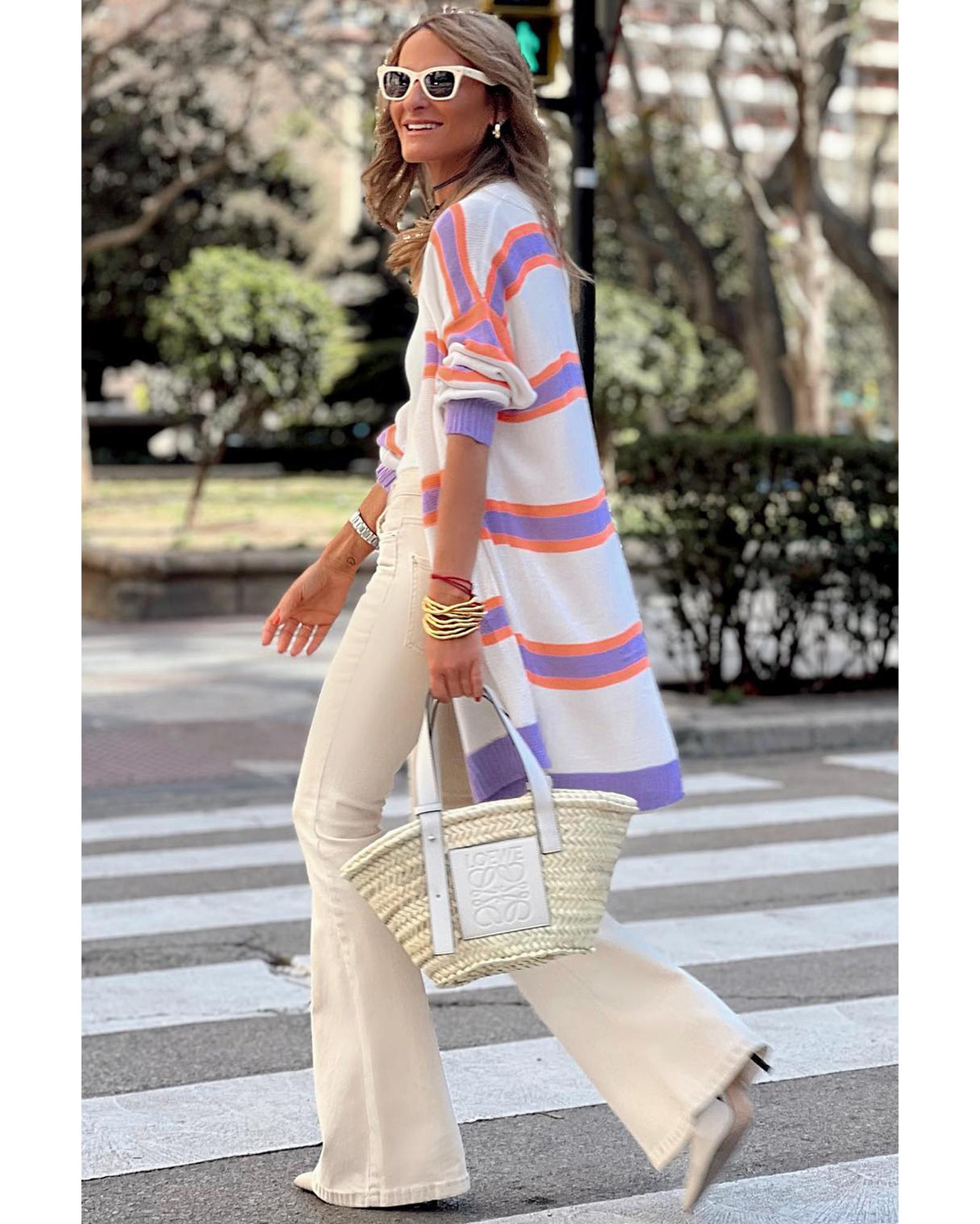Azura Exchange Beige Drop Shoulder Pocketed Stripe Sweater Cardigan – XL